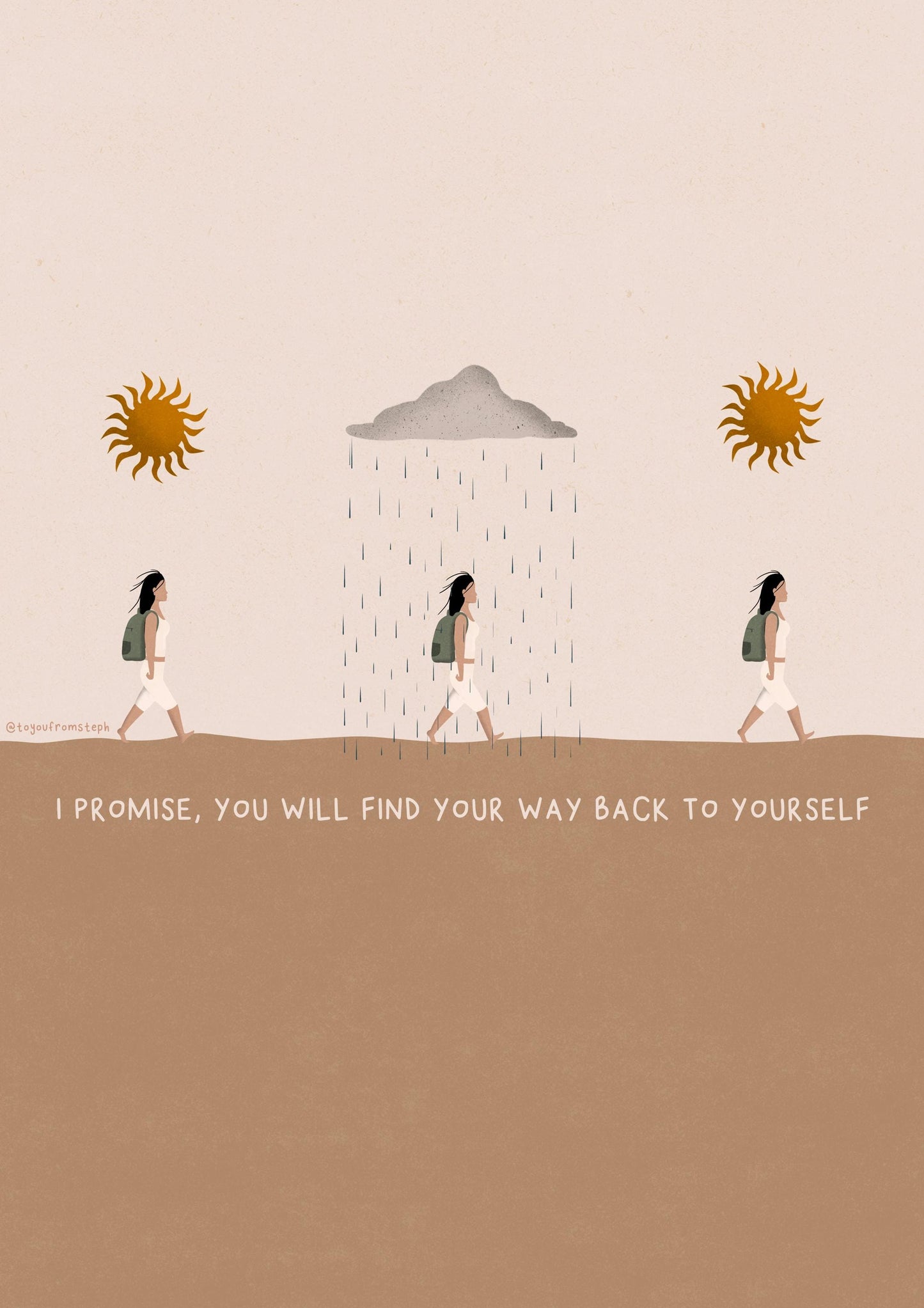 Elevate your home decor with this inspiring and motivational art print. This illustration features a powerful quote that is perfect for any woman's space. Printed on high-quality paper, this art print adds a touch of inspiration to any room. Transform your home into a haven of self-care with this beautiful print.