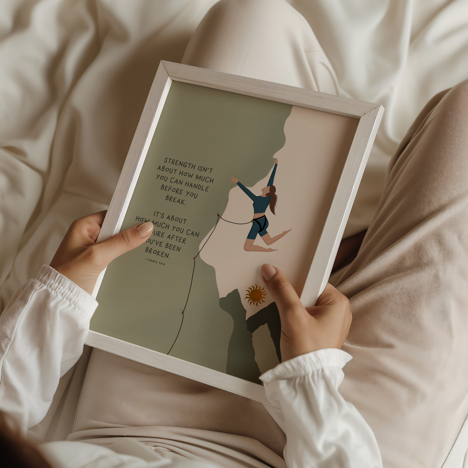 Elevate your home decor with this inspiring and motivational art print. This illustration features a powerful quote that is perfect for any woman's space. Printed on high-quality paper, this art print adds a touch of inspiration to any room. Transform your home into a haven of self-care with this beautiful print.