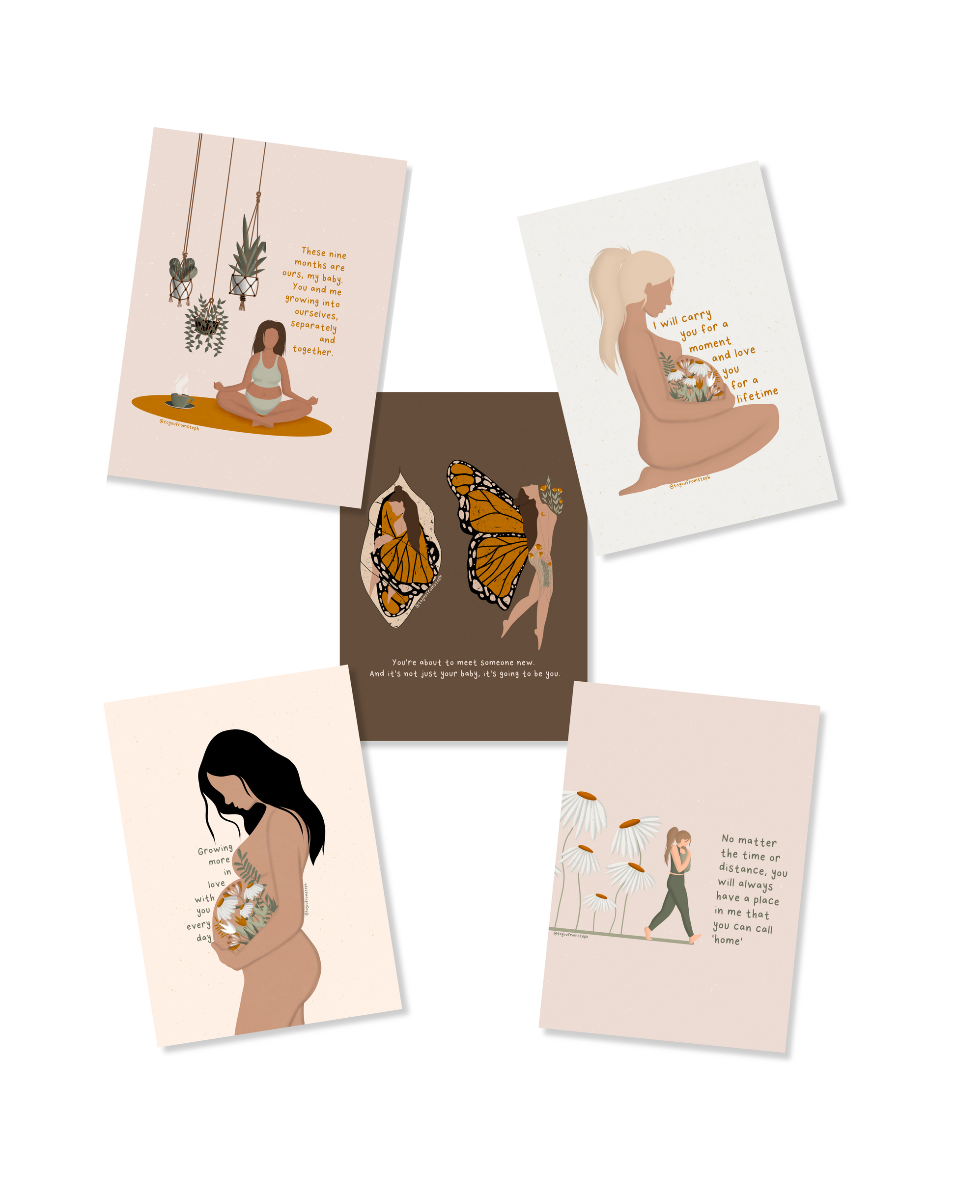 A bundle pack of 5 different postcards all based on the theme of pregnancy.