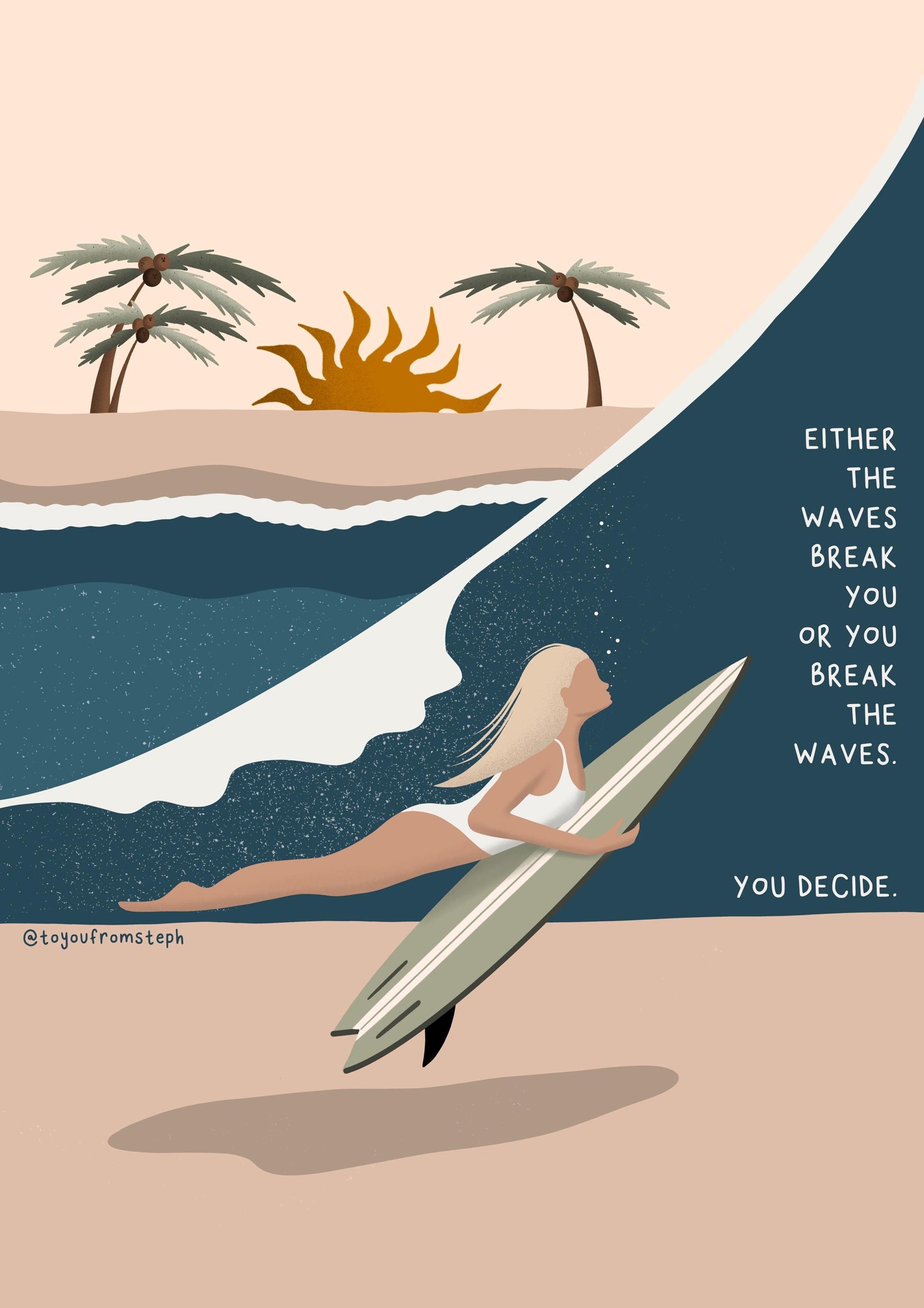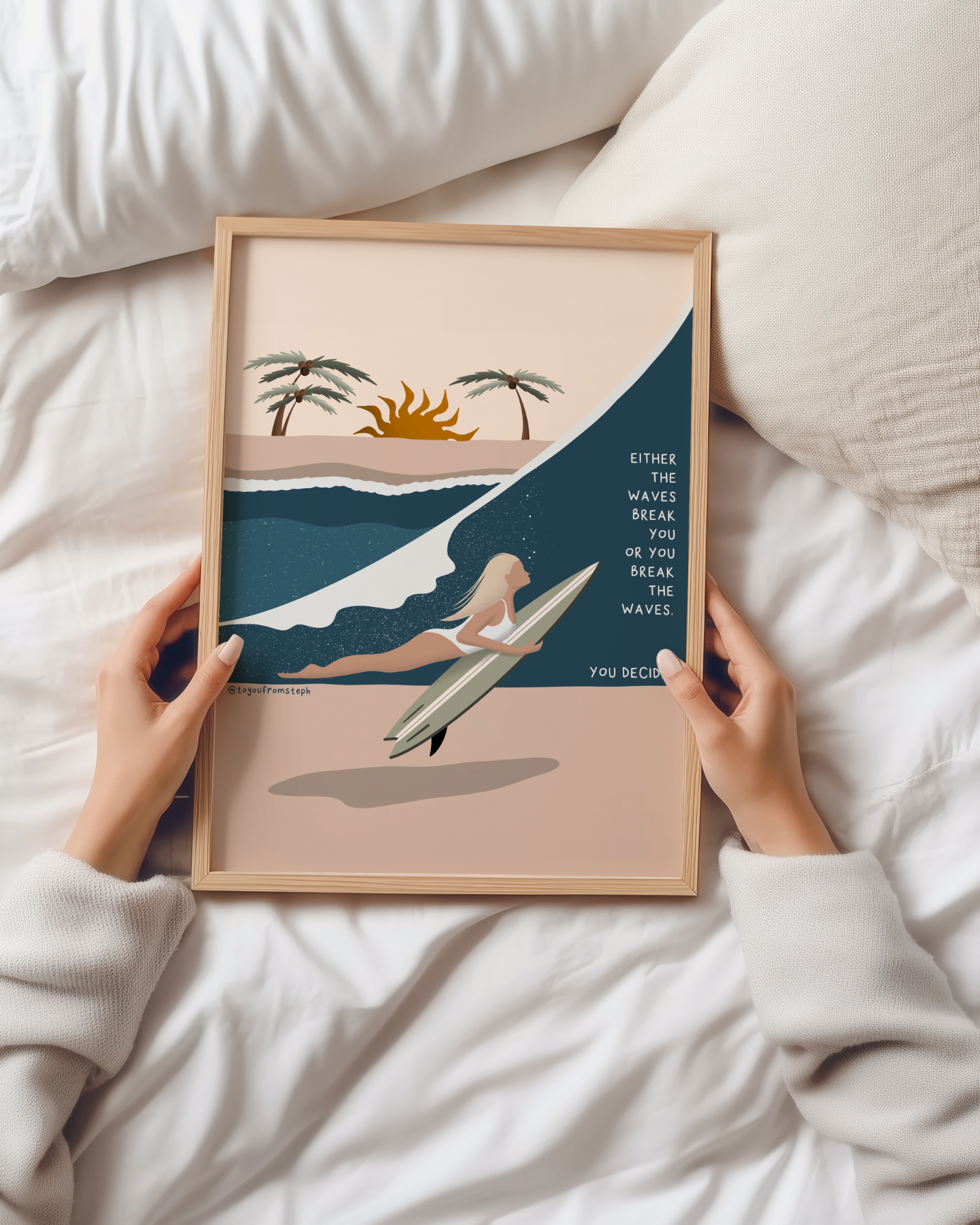 Elevate your home decor with this inspiring and motivational art print. This illustration features a powerful quote that is perfect for any woman's space. Printed on high-quality paper, this art print adds a touch of inspiration to any room. Transform your home into a haven of self-care with this beautiful print.