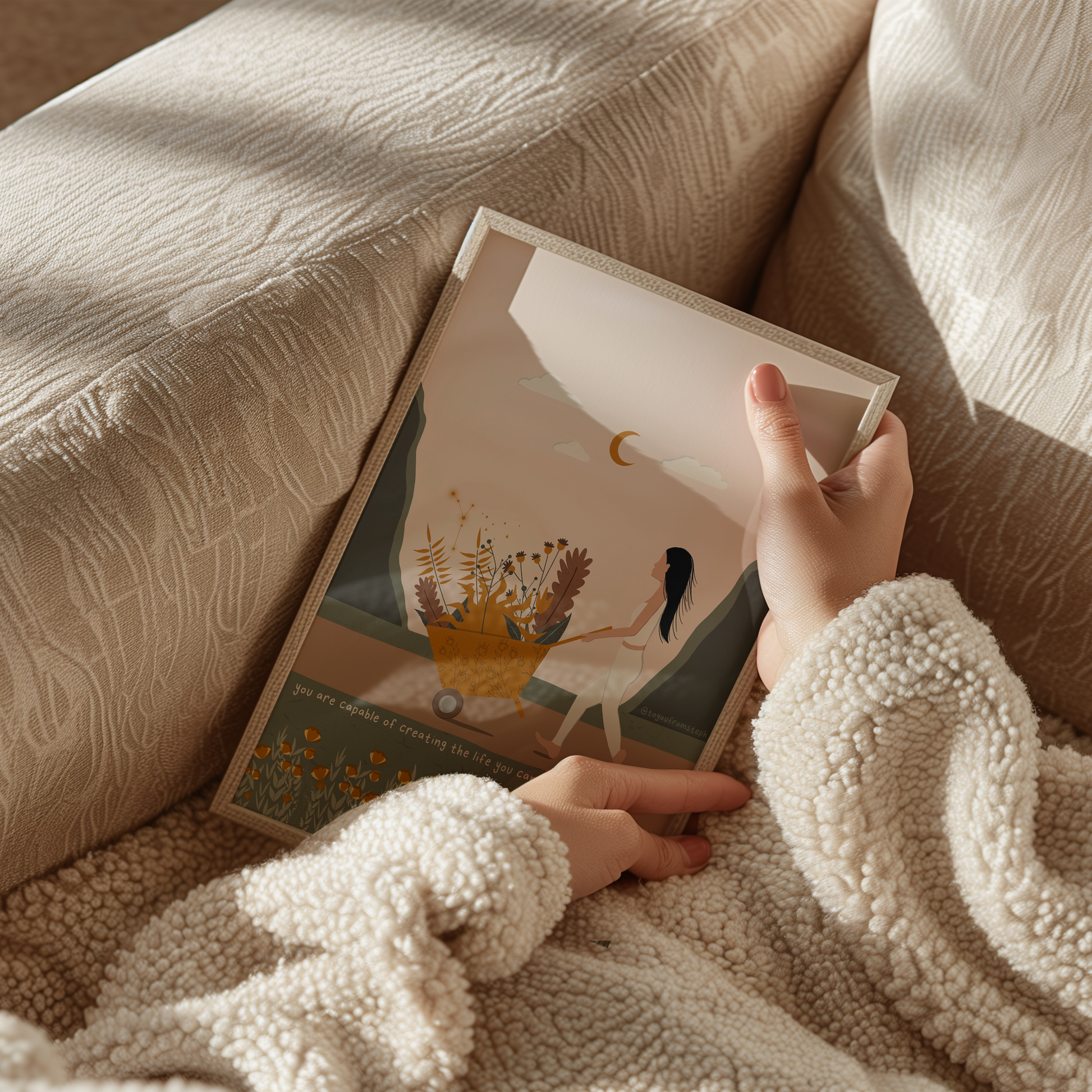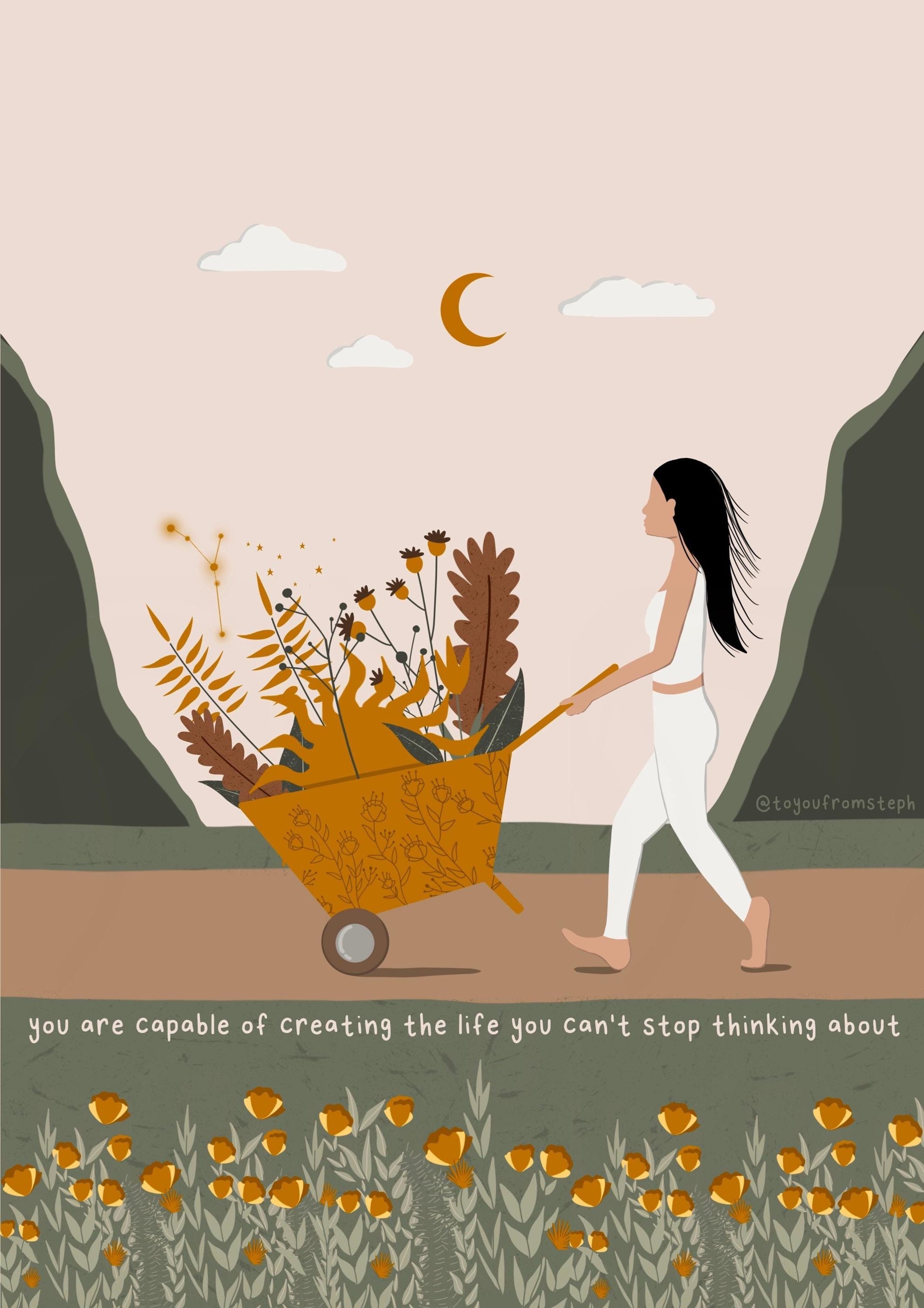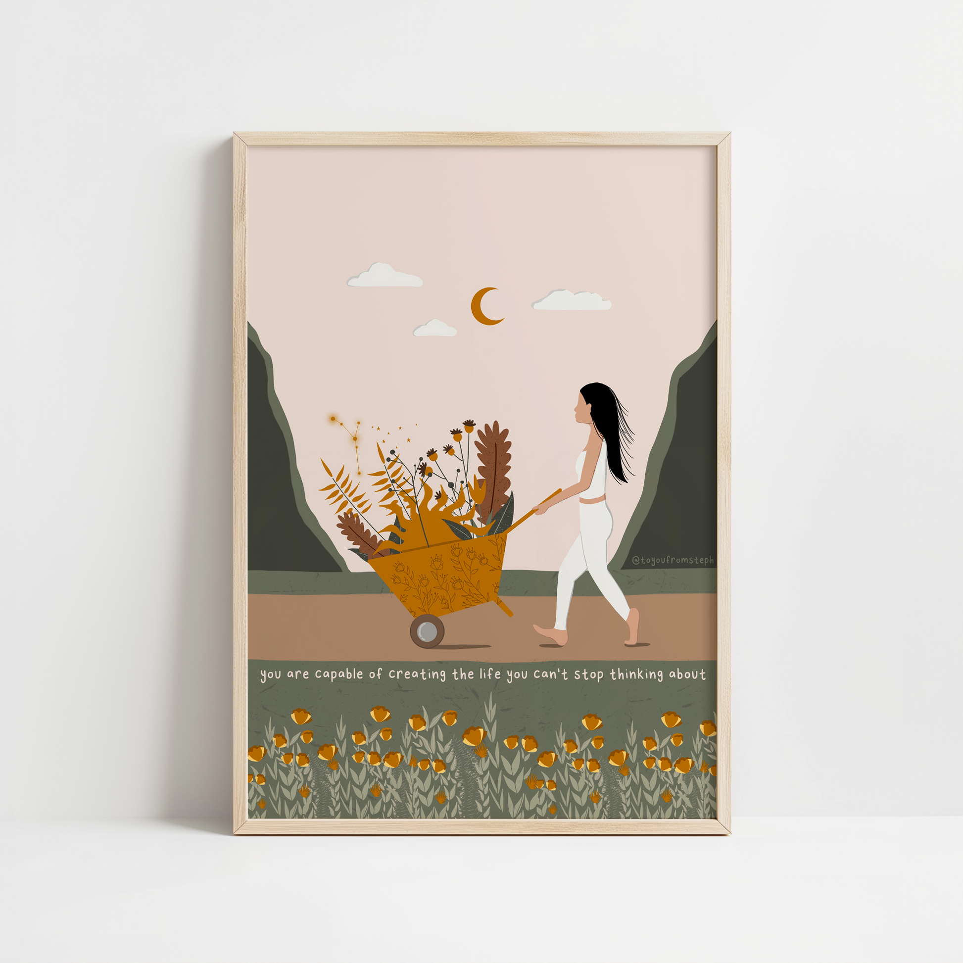 Elevate your home decor with this inspiring and motivational art print. This illustration features a powerful quote that is perfect for any woman's space. Printed on high-quality paper, this art print adds a touch of inspiration to any room. Transform your home into a haven of self-care with this beautiful print.