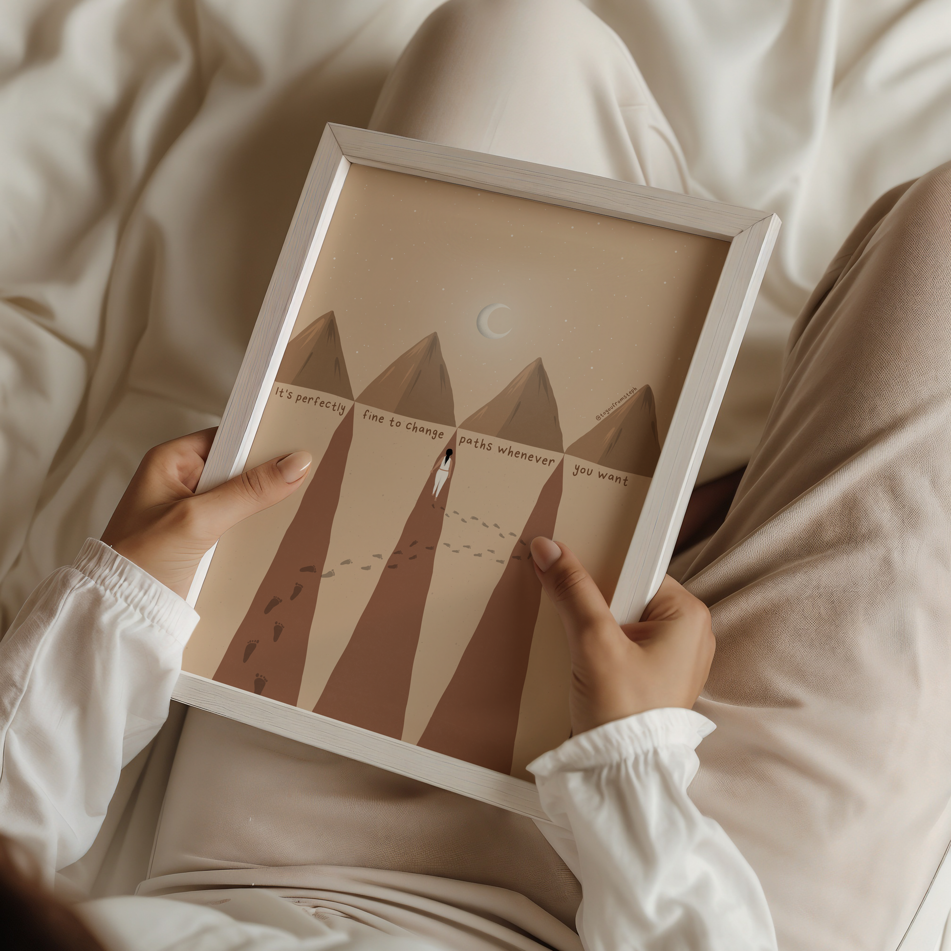 Elevate your home decor with this inspiring and motivational art print. This illustration features a powerful quote that is perfect for any woman's space. Printed on high-quality paper, this art print adds a touch of inspiration to any room. Transform your home into a haven of self-care with this beautiful print.