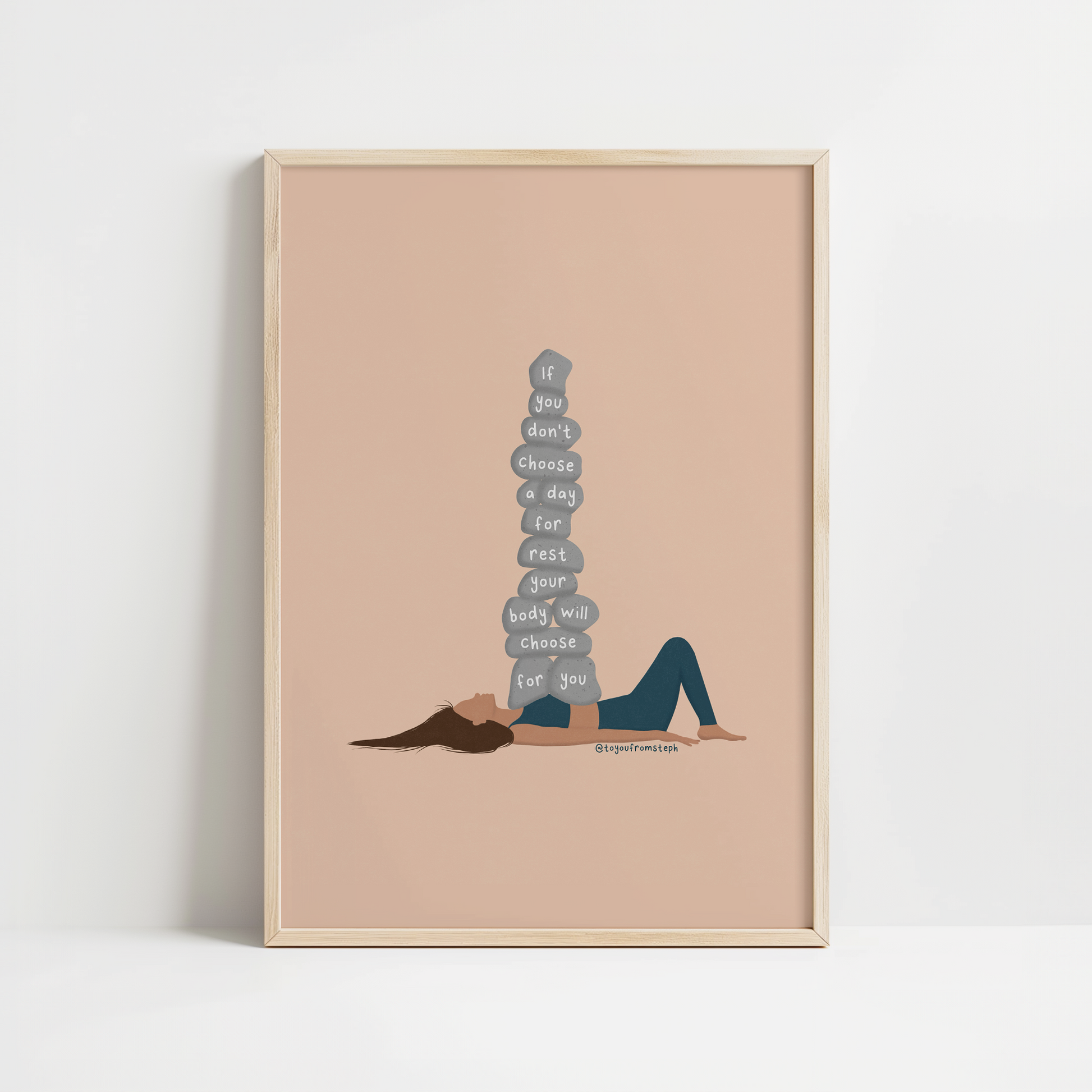 Elevate your home decor with this inspiring and motivational art print. This illustration features a powerful quote that is perfect for any woman's space. Printed on high-quality paper, this art print adds a touch of inspiration to any room. Transform your home into a haven of self-care with this beautiful print.