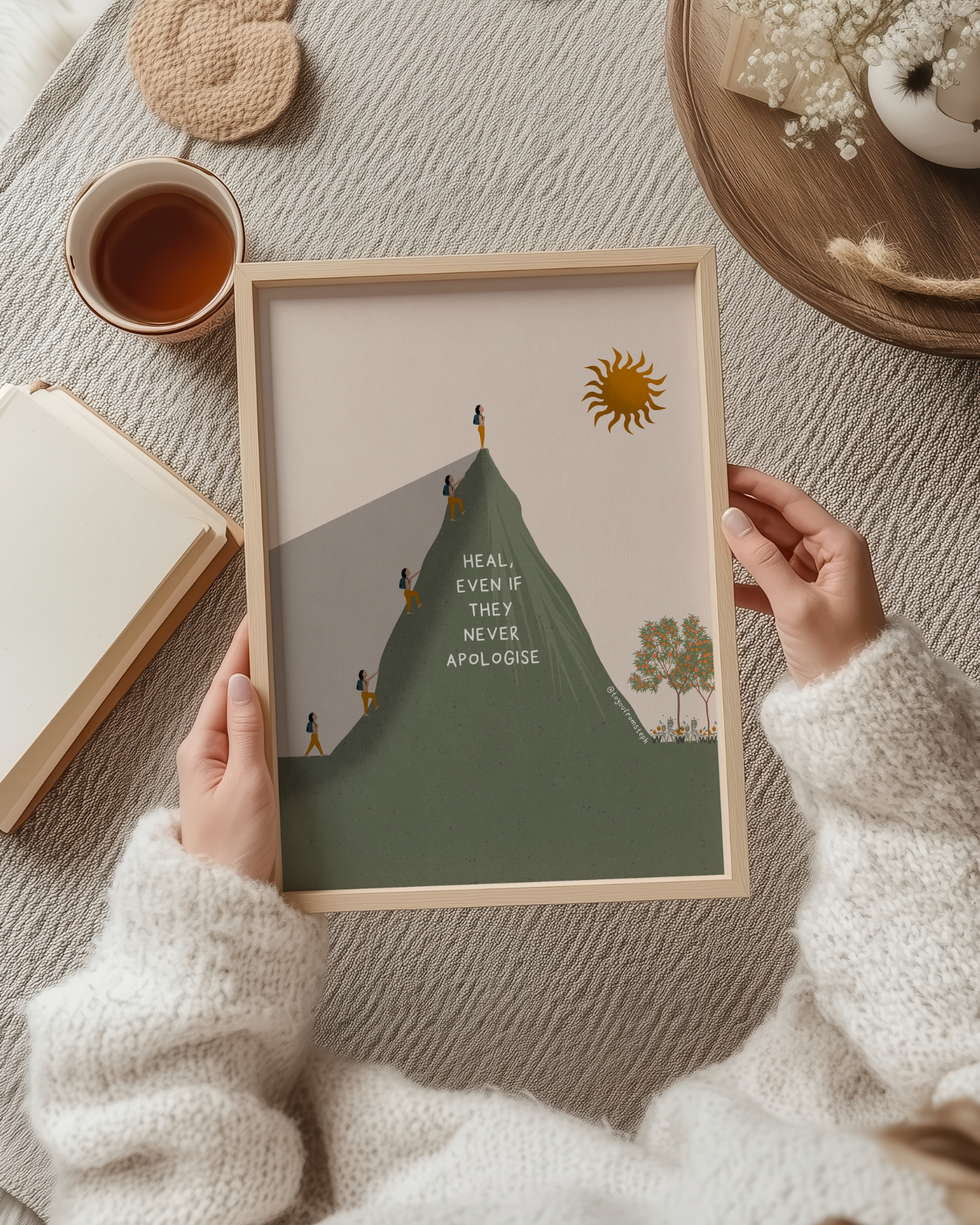 Elevate your home decor with this inspiring and motivational art print. This illustration features a powerful quote that is perfect for any woman's space. Printed on high-quality paper, this art print adds a touch of inspiration to any room. Transform your home into a haven of self-care with this beautiful print.