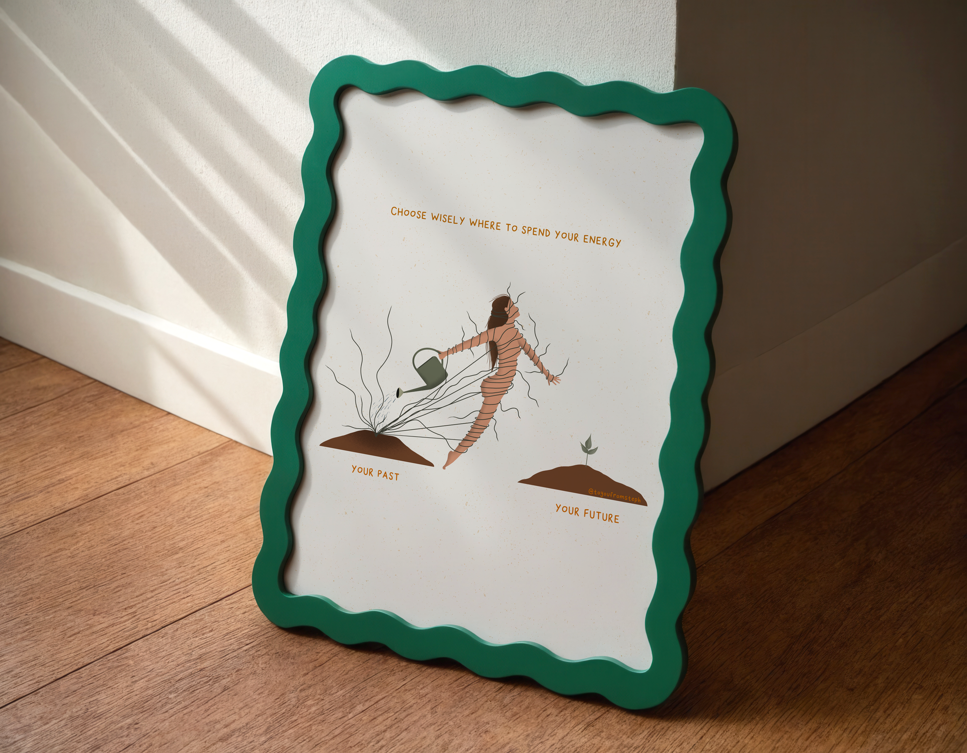 Elevate your home decor with this inspiring and motivational art print. This illustration features a powerful quote that is perfect for any woman's space. Printed on high-quality paper, this art print adds a touch of inspiration to any room. Transform your home into a haven of self-care with this beautiful print.