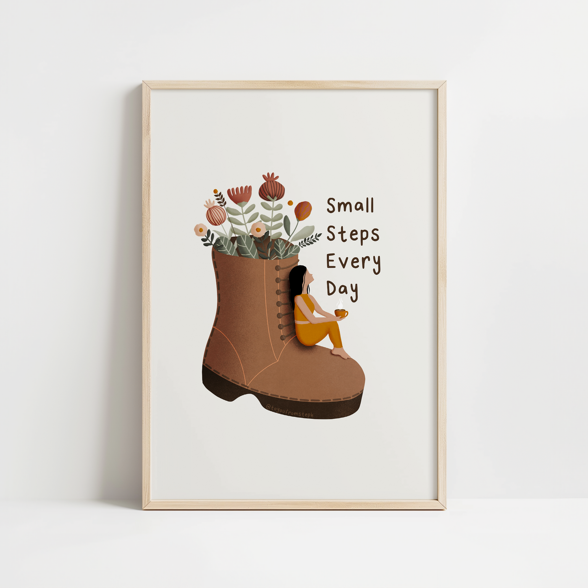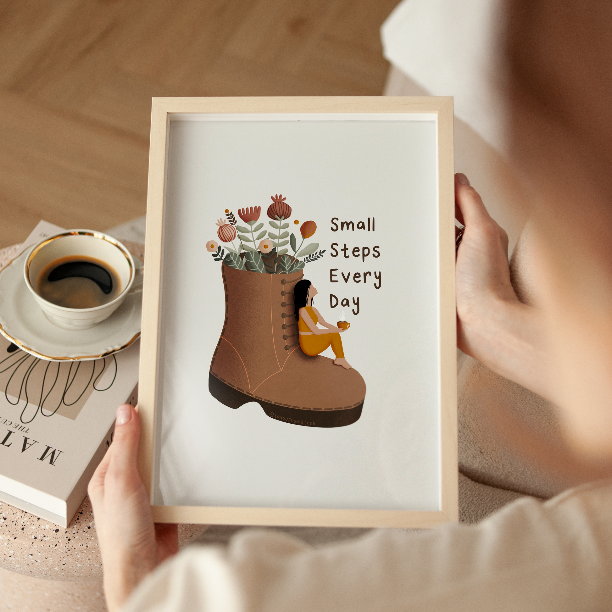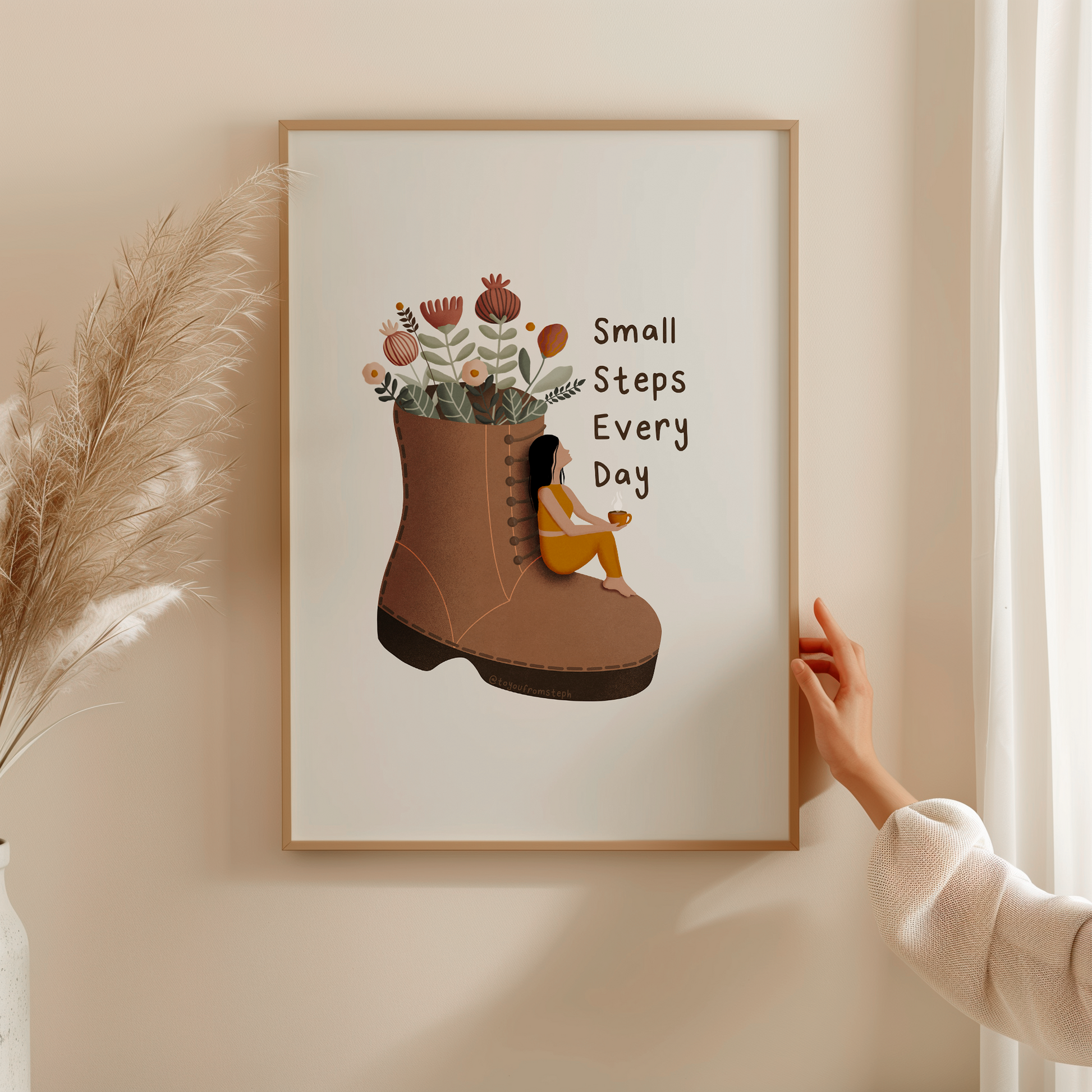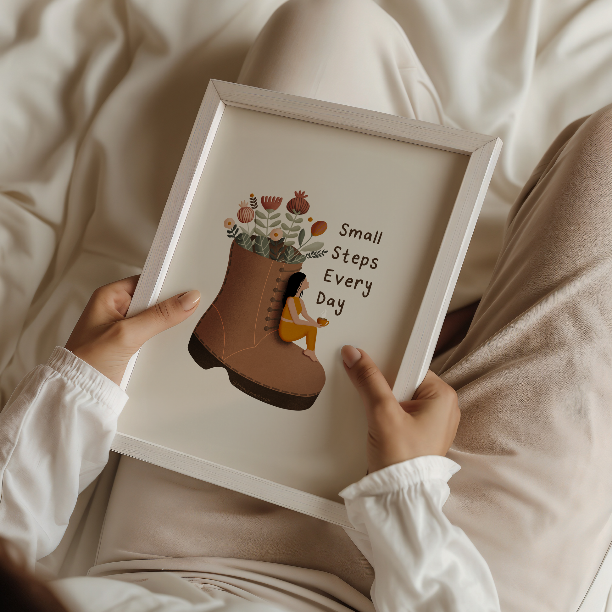 Elevate your home decor with this inspiring and motivational art print. This illustration features a powerful quote that is perfect for any woman's space. Printed on high-quality paper, this art print adds a touch of inspiration to any room. Transform your home into a haven of self-care with this beautiful print.