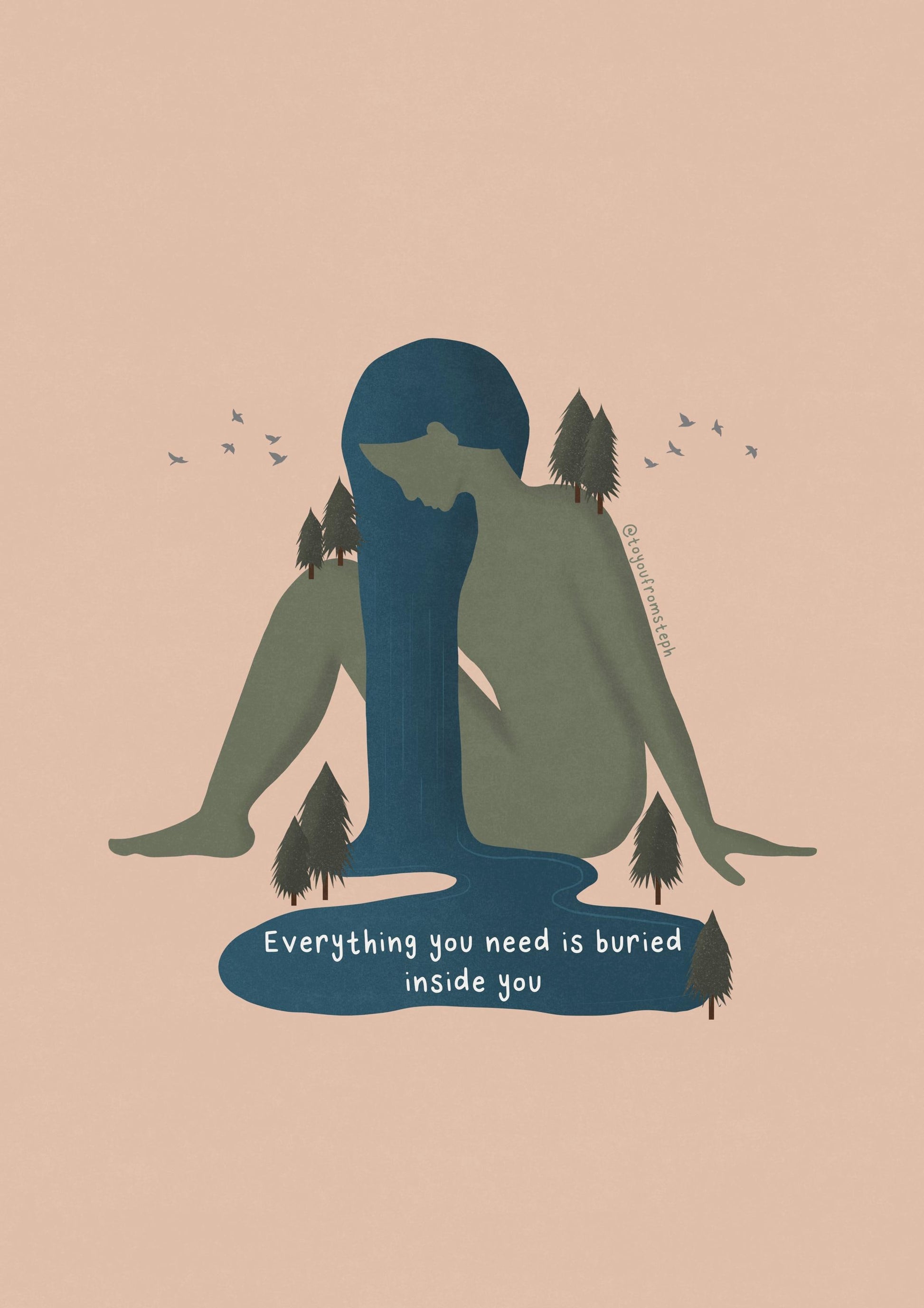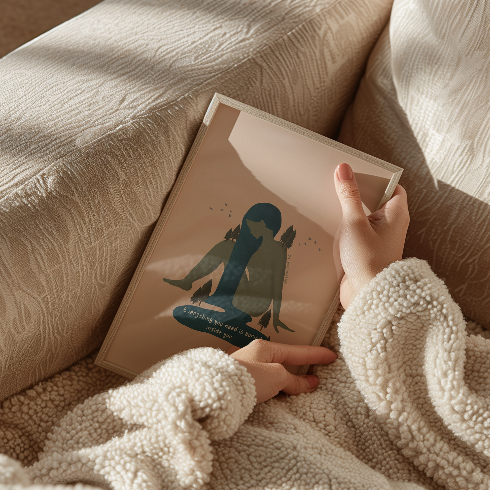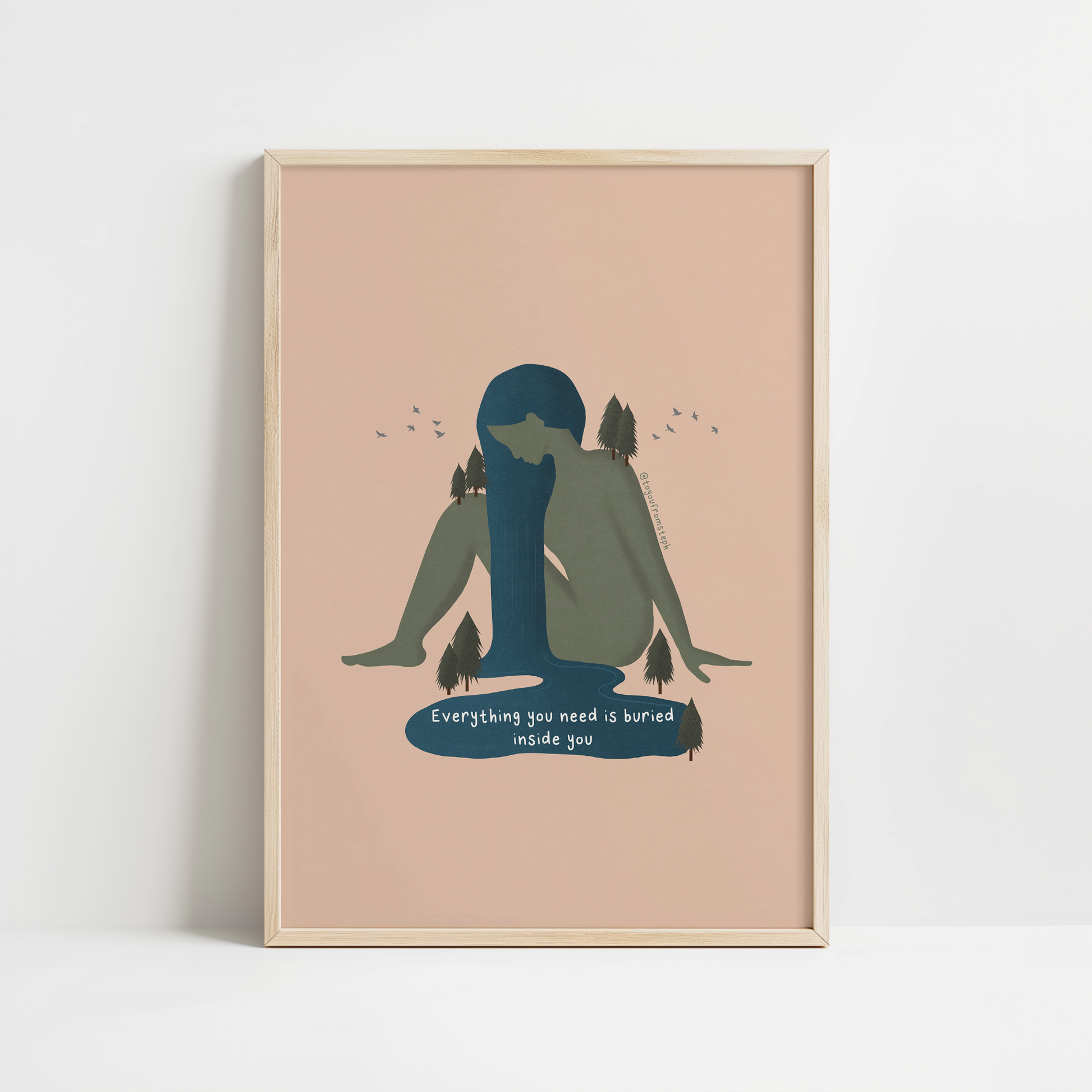 Elevate your home decor with this inspiring and motivational art print. This illustration features a powerful quote that is perfect for any woman's space. Printed on high-quality paper, this art print adds a touch of inspiration to any room. Transform your home into a haven of self-care with this beautiful print.