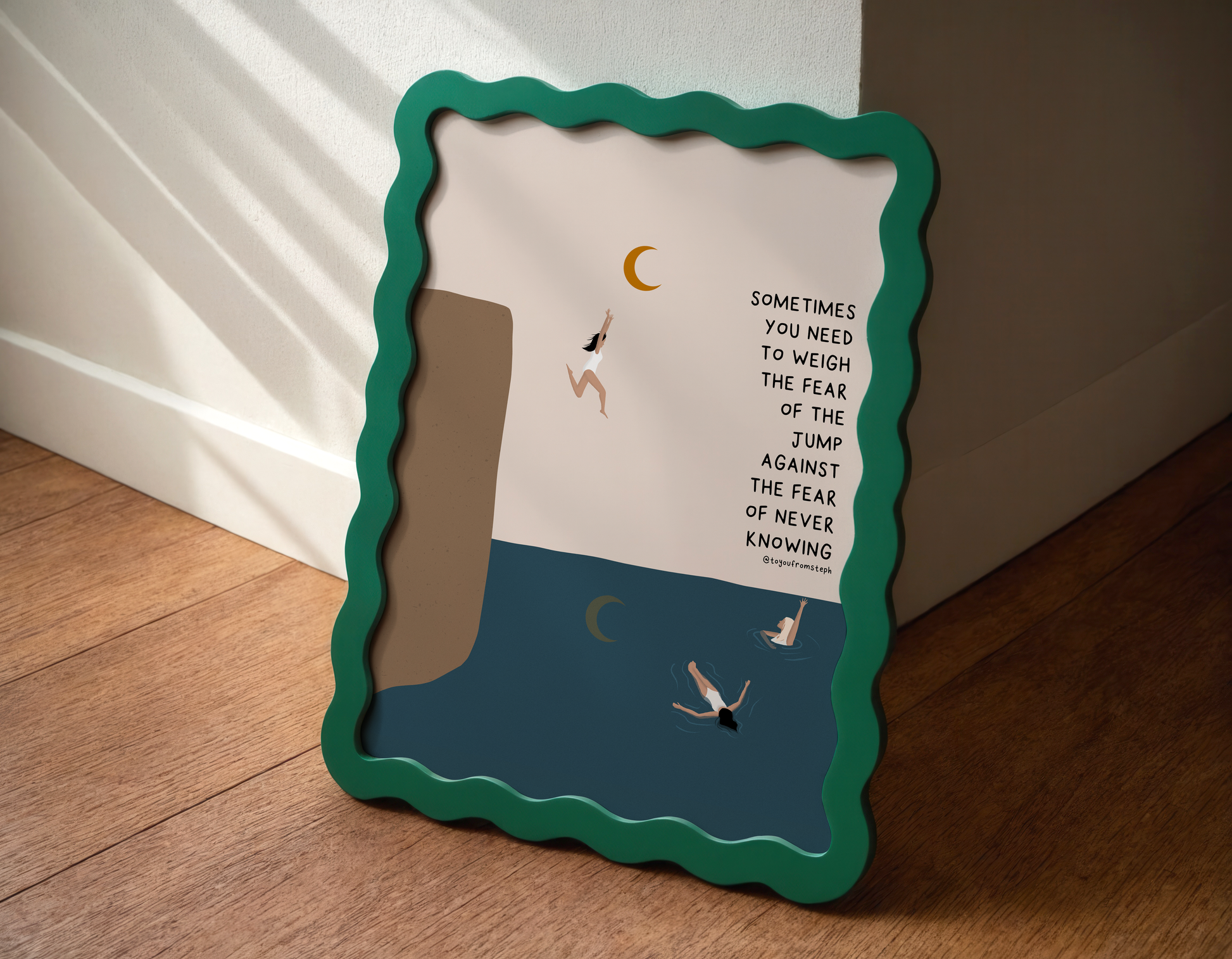 Elevate your home decor with this inspiring and motivational art print. This illustration features a powerful quote that is perfect for any woman's space. Printed on high-quality paper, this art print adds a touch of inspiration to any room. Transform your home into a haven of self-care with this beautiful print.