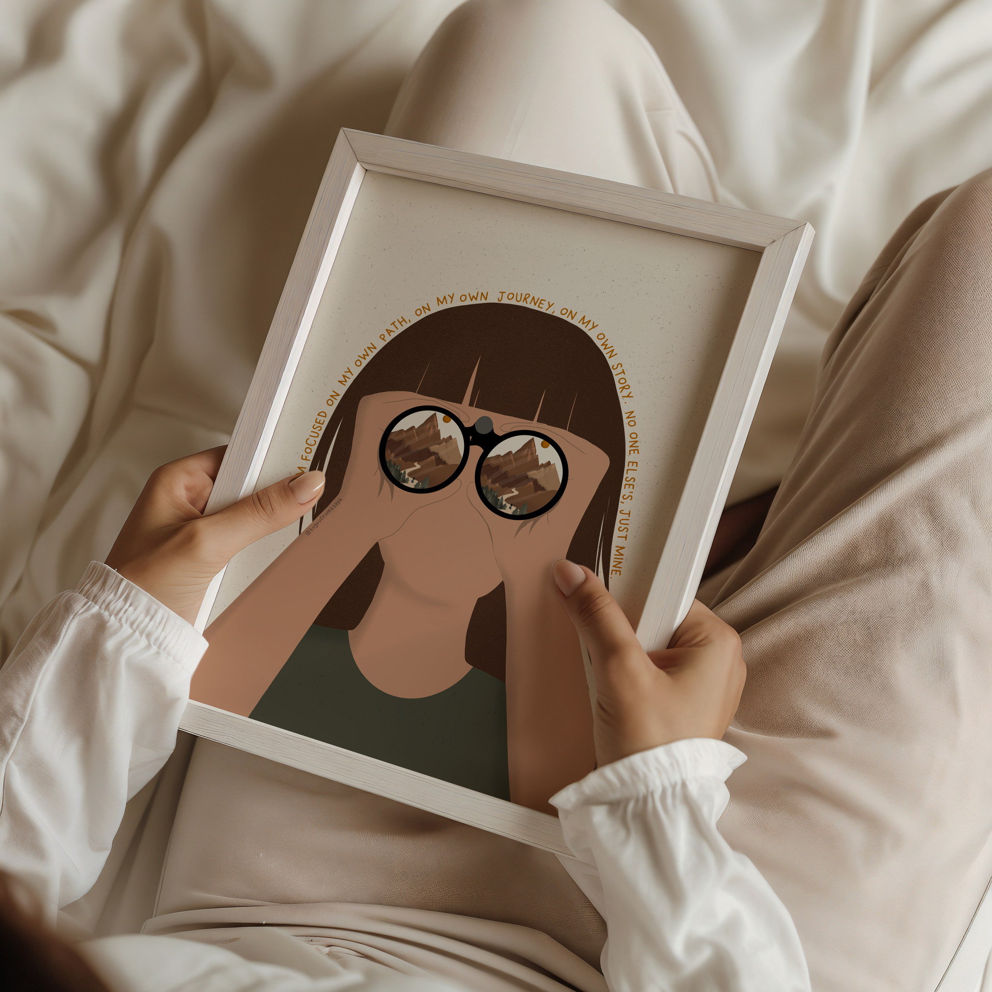 Elevate your home decor with this inspiring and motivational art print. This illustration features a powerful quote that is perfect for any woman's space. Printed on high-quality paper, this art print adds a touch of inspiration to any room. Transform your home into a haven of self-care with this beautiful print.