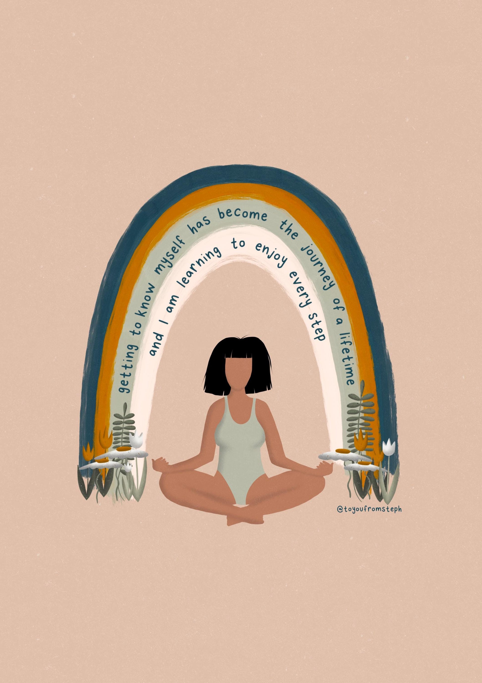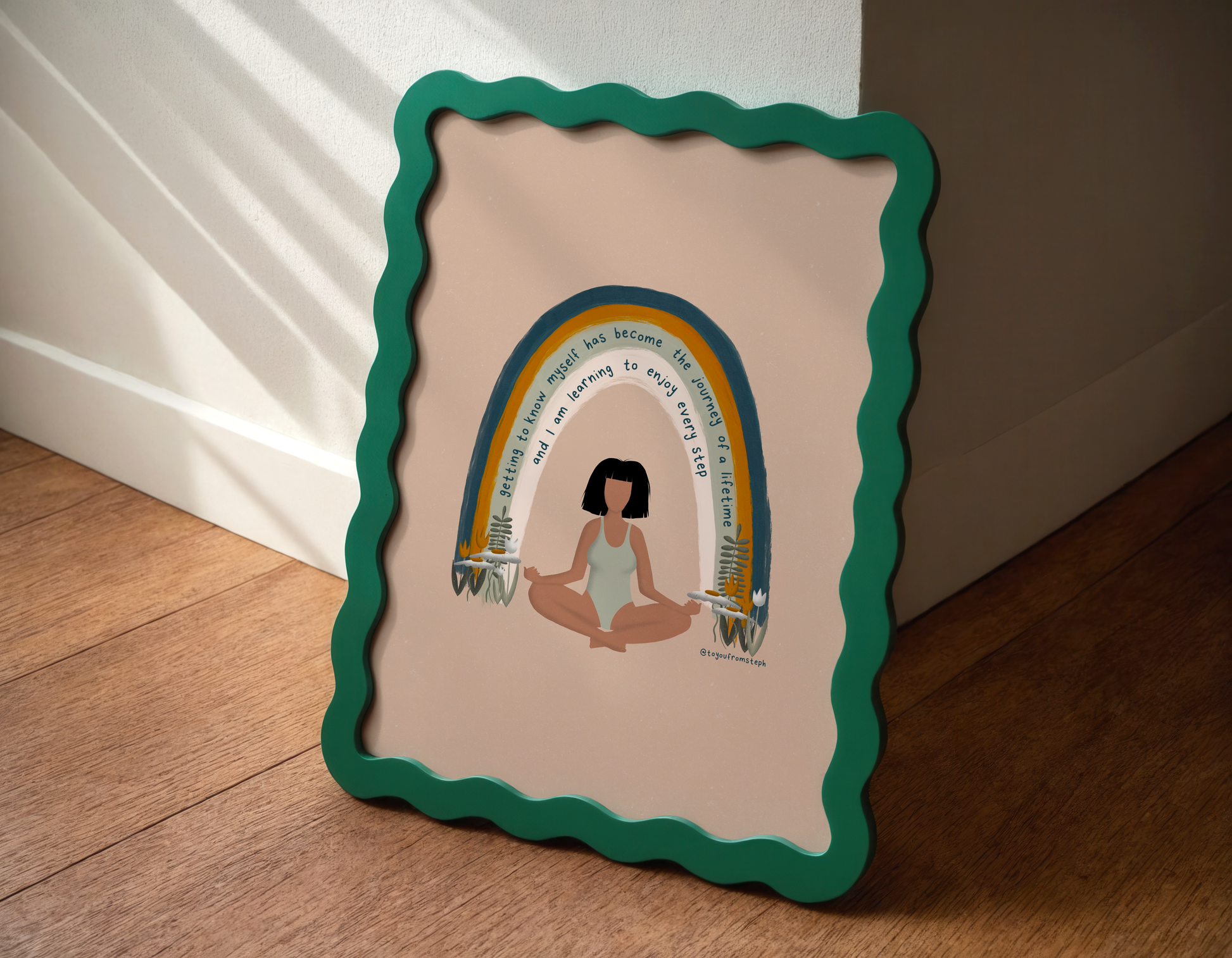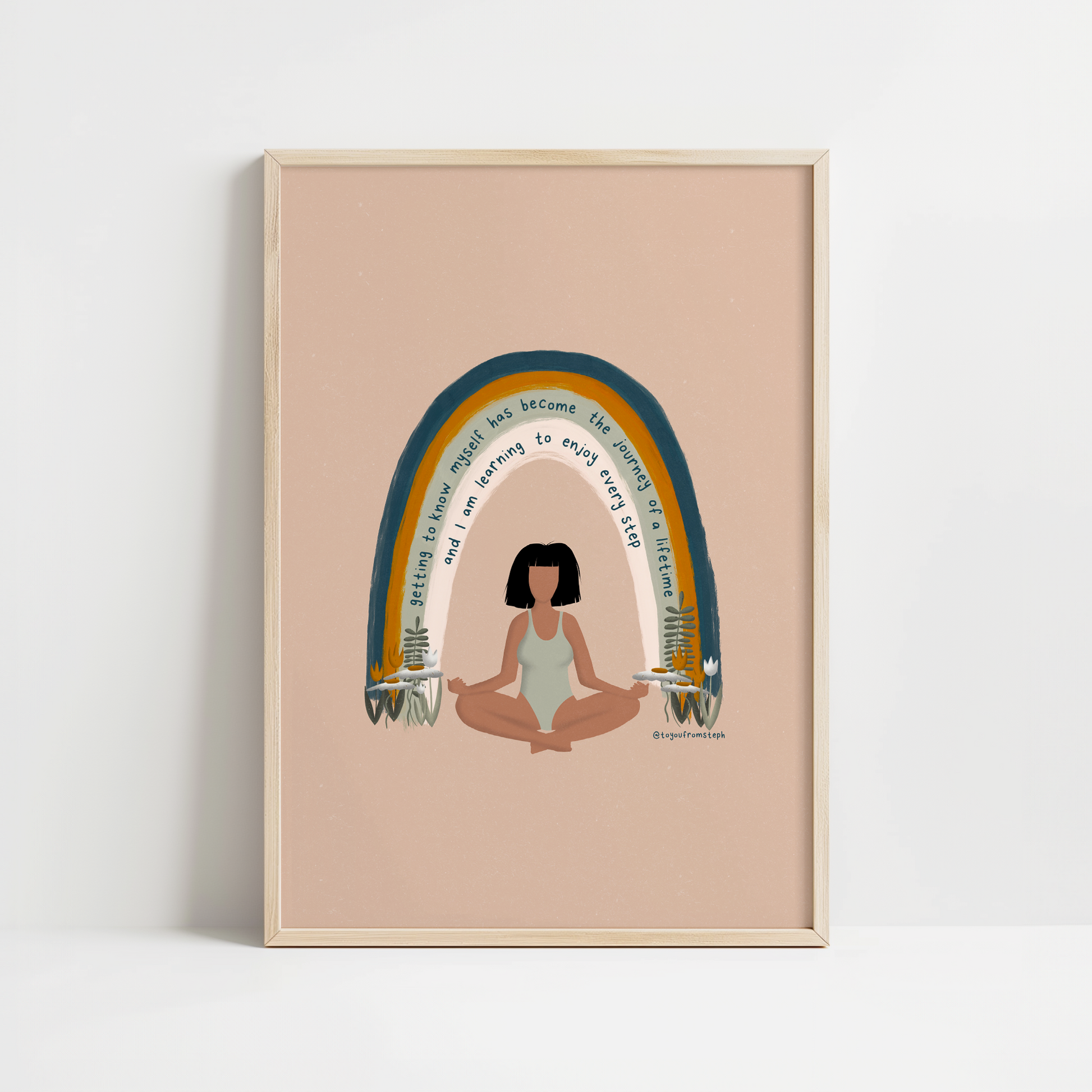Elevate your home decor with this inspiring and motivational art print. This illustration features a powerful quote that is perfect for any woman's space. Printed on high-quality paper, this art print adds a touch of inspiration to any room. Transform your home into a haven of self-care with this beautiful print.