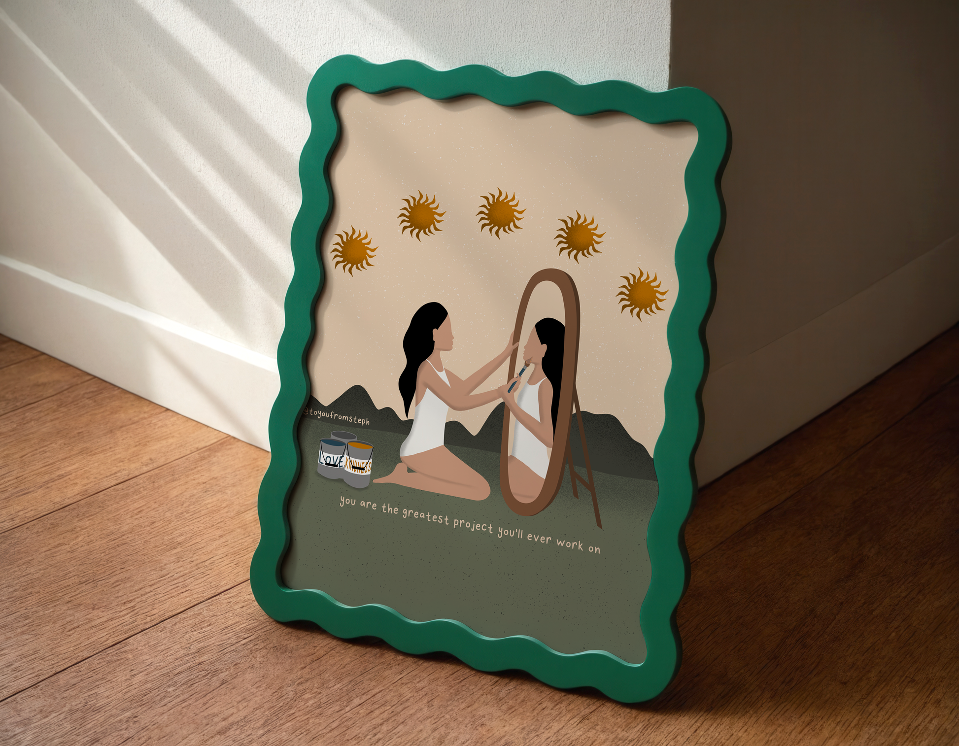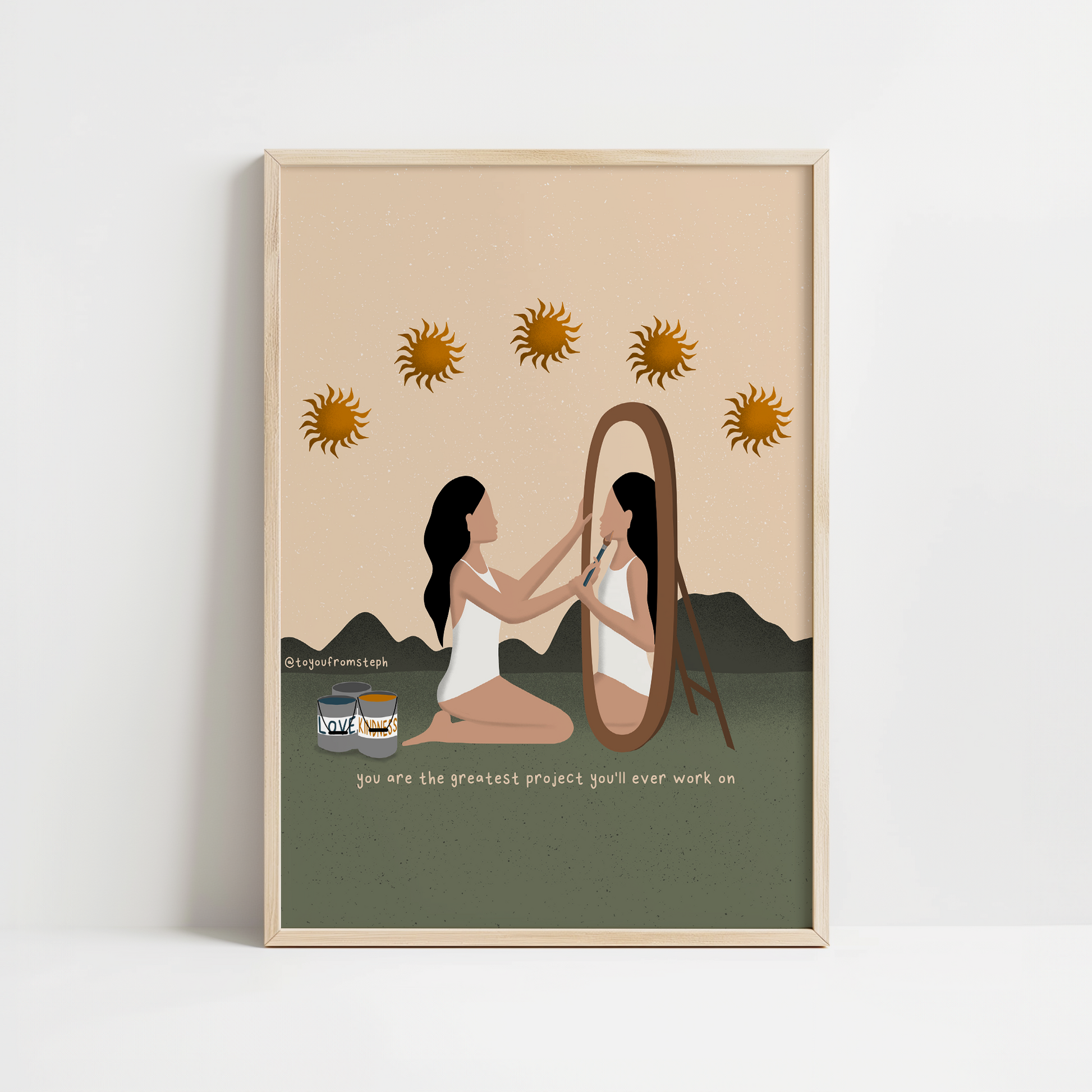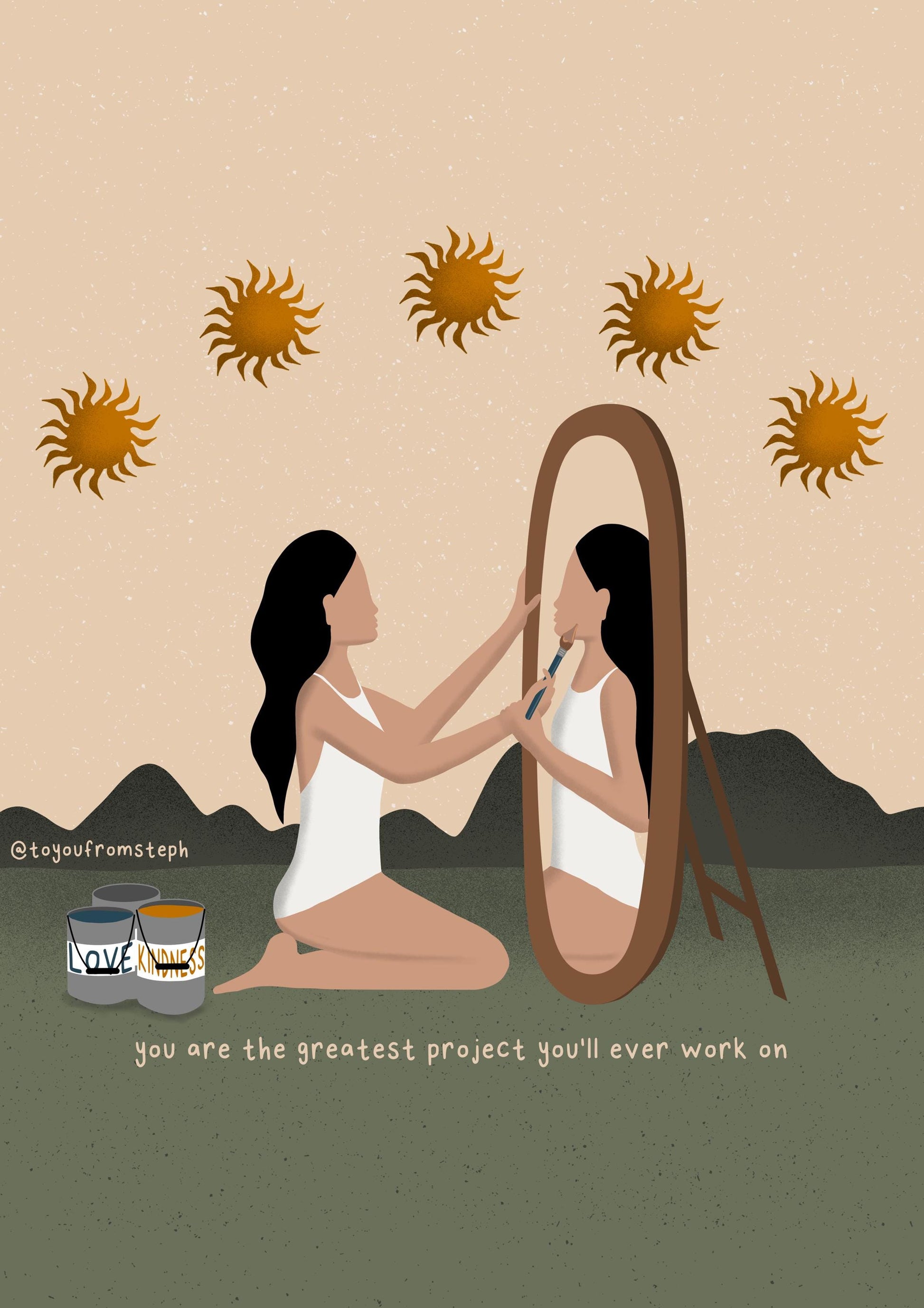 Elevate your home decor with this inspiring and motivational art print. This illustration features a powerful quote that is perfect for any woman's space. Printed on high-quality paper, this art print adds a touch of inspiration to any room. Transform your home into a haven of self-care with this beautiful print.