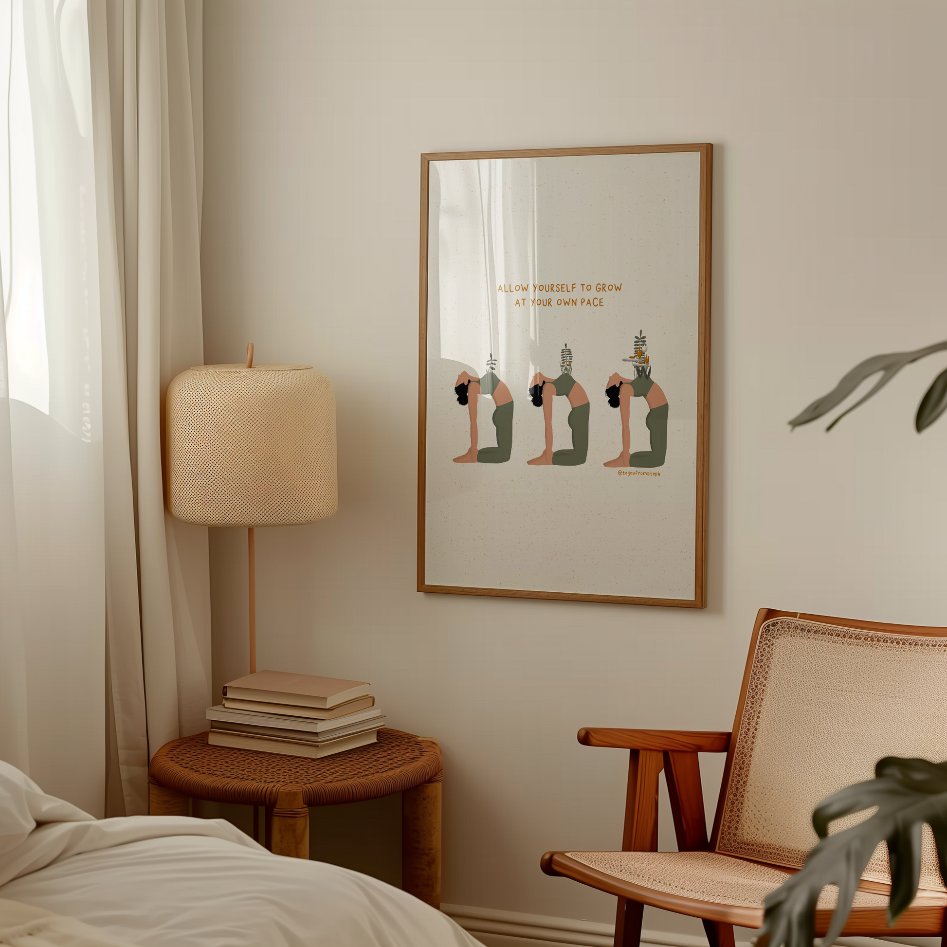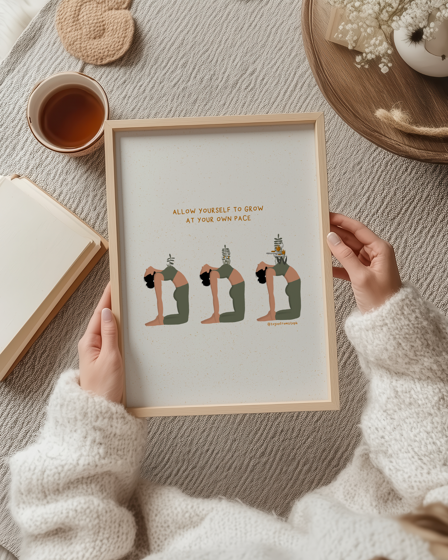 Elevate your home decor with this inspiring and motivational art print. This illustration features a powerful quote that is perfect for any woman's space. Printed on high-quality paper, this art print adds a touch of inspiration to any room. Transform your home into a haven of self-care with this beautiful print.