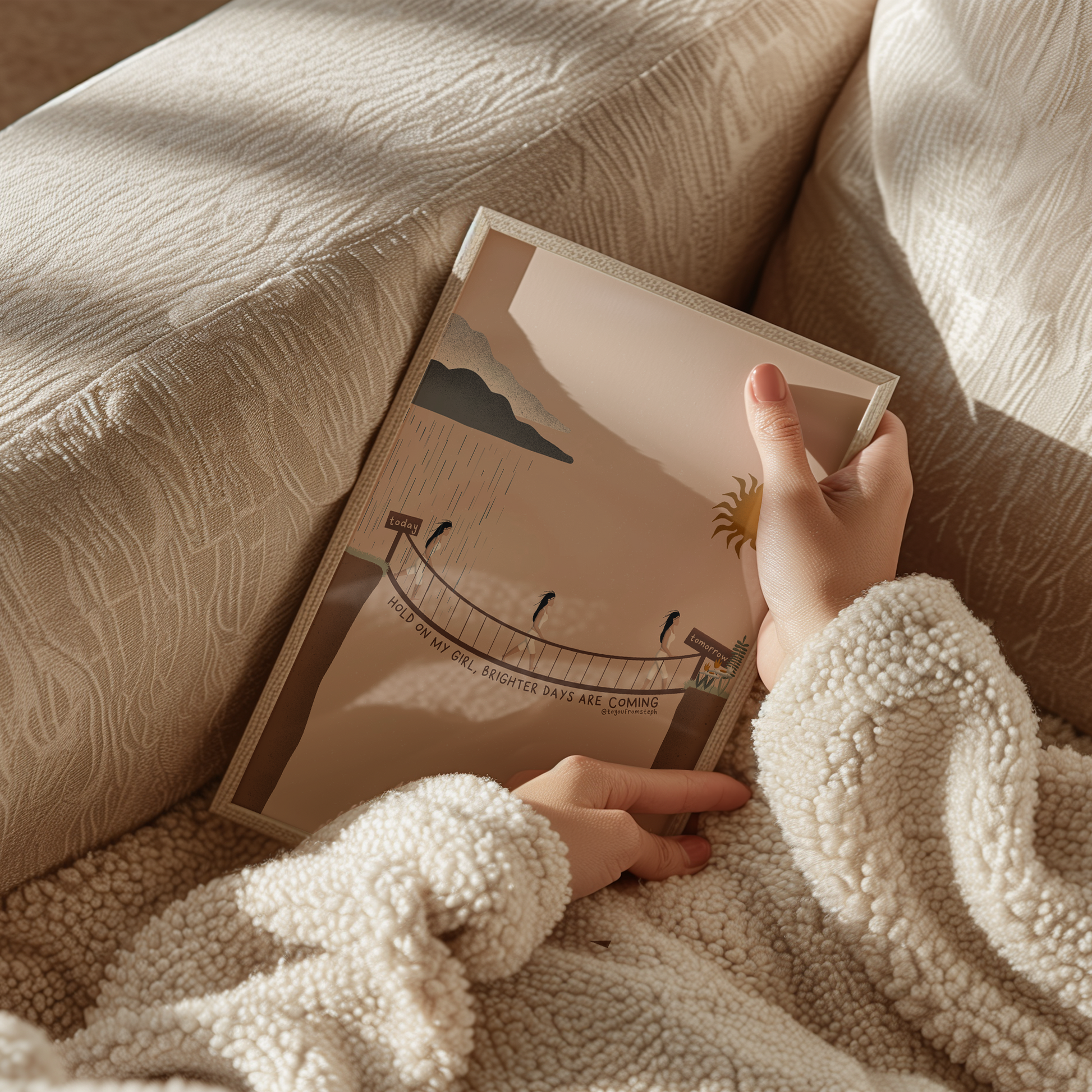 Elevate your home decor with this inspiring and motivational art print. This illustration features a powerful quote that is perfect for any woman's space. Printed on high-quality paper, this art print adds a touch of inspiration to any room. Transform your home into a haven of self-care with this beautiful print.