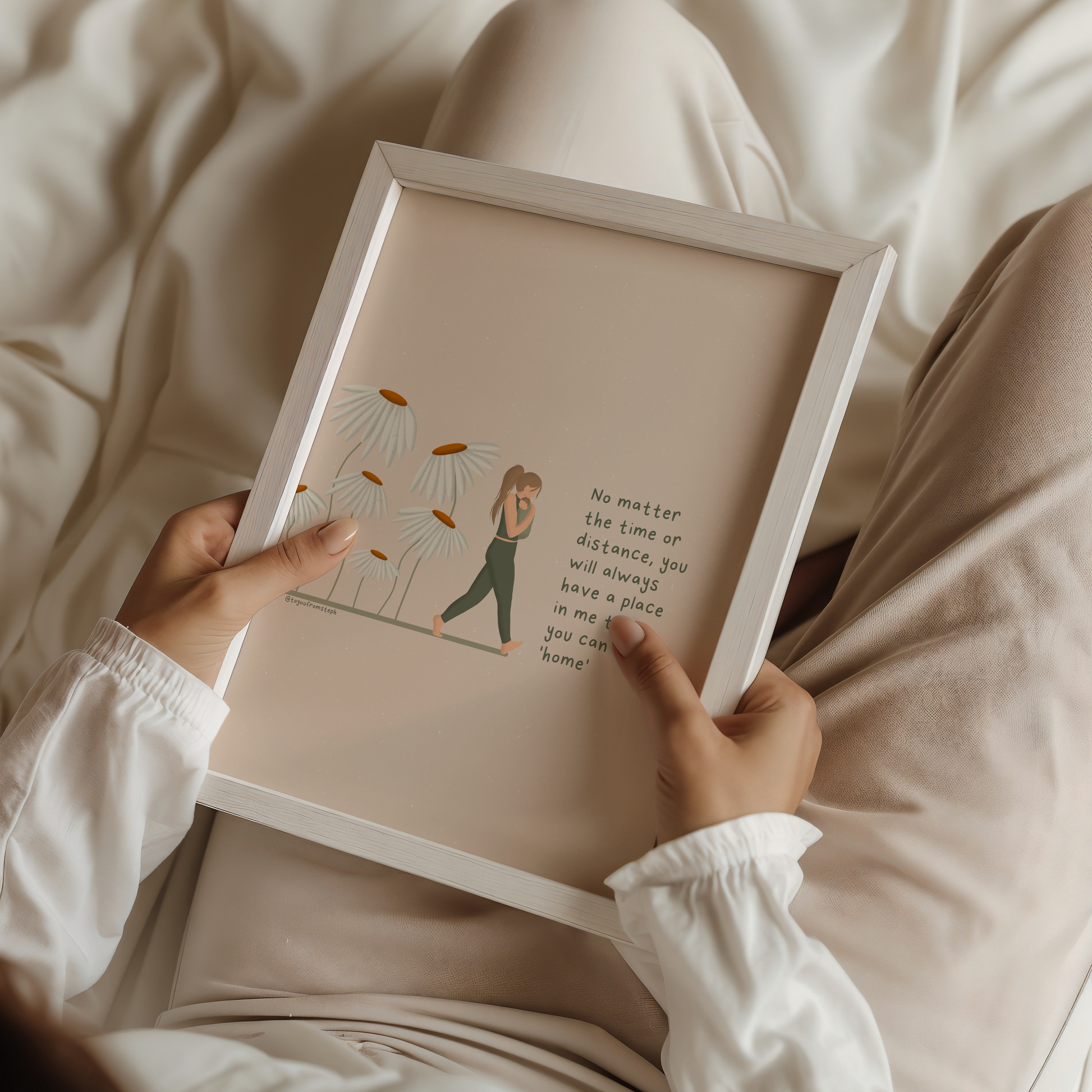 Elevate your home decor with this inspiring and motivational art print. This illustration features a powerful quote that is perfect for any woman's space. Printed on high-quality paper, this art print adds a touch of inspiration to any room. Transform your home into a haven of self-care with this beautiful print.