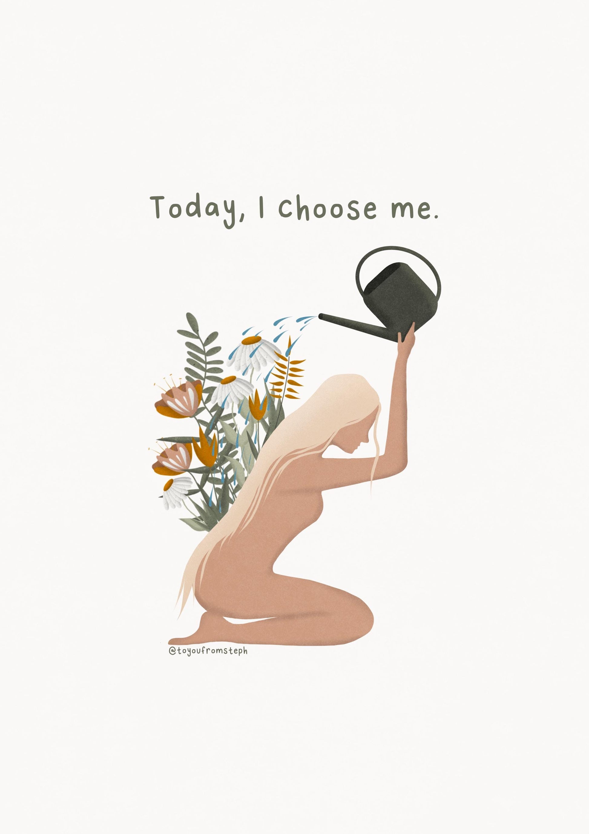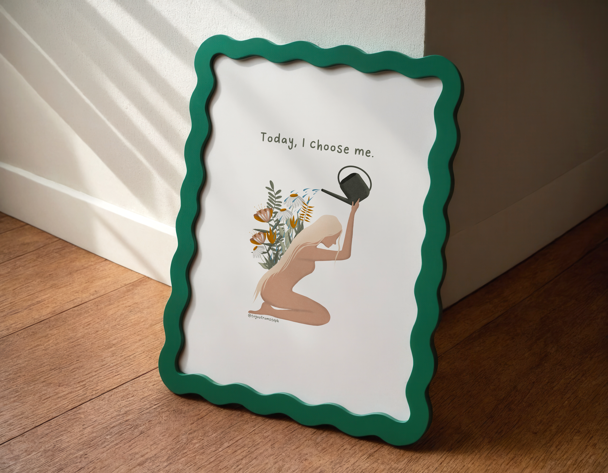 Elevate your home decor with this inspiring and motivational art print. This illustration features a powerful quote that is perfect for any woman's space. Printed on high-quality paper, this art print adds a touch of inspiration to any room. Transform your home into a haven of self-care with this beautiful print.