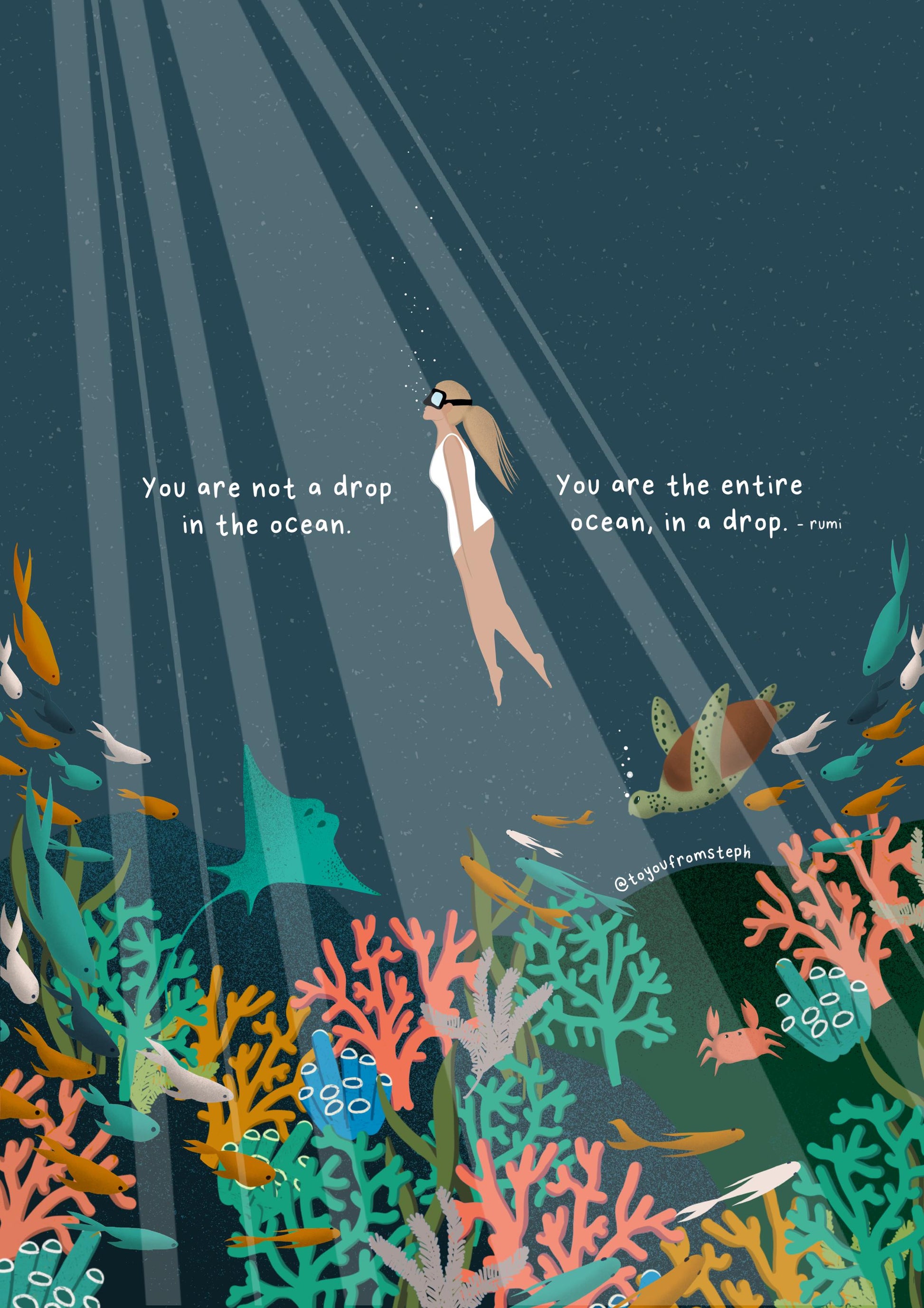 Elevate your home decor with this inspiring and motivational art print. This illustration features a powerful quote that is perfect for any woman's space. Printed on high-quality paper, this art print adds a touch of inspiration to any room. Transform your home into a haven of self-care with this beautiful print.