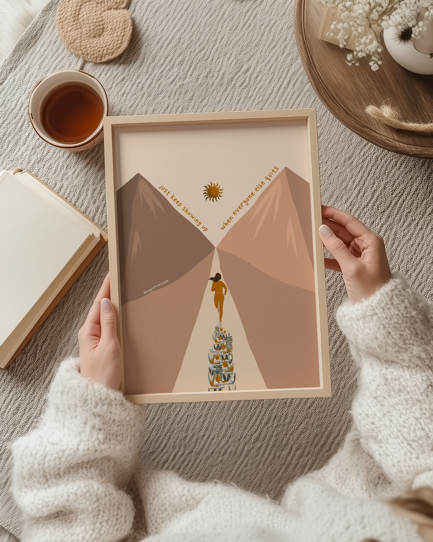 Elevate your home decor with this inspiring and motivational art print. This illustration features a powerful quote that is perfect for any woman's space. Printed on high-quality paper, this art print adds a touch of inspiration to any room. Transform your home into a haven of self-care with this beautiful print.