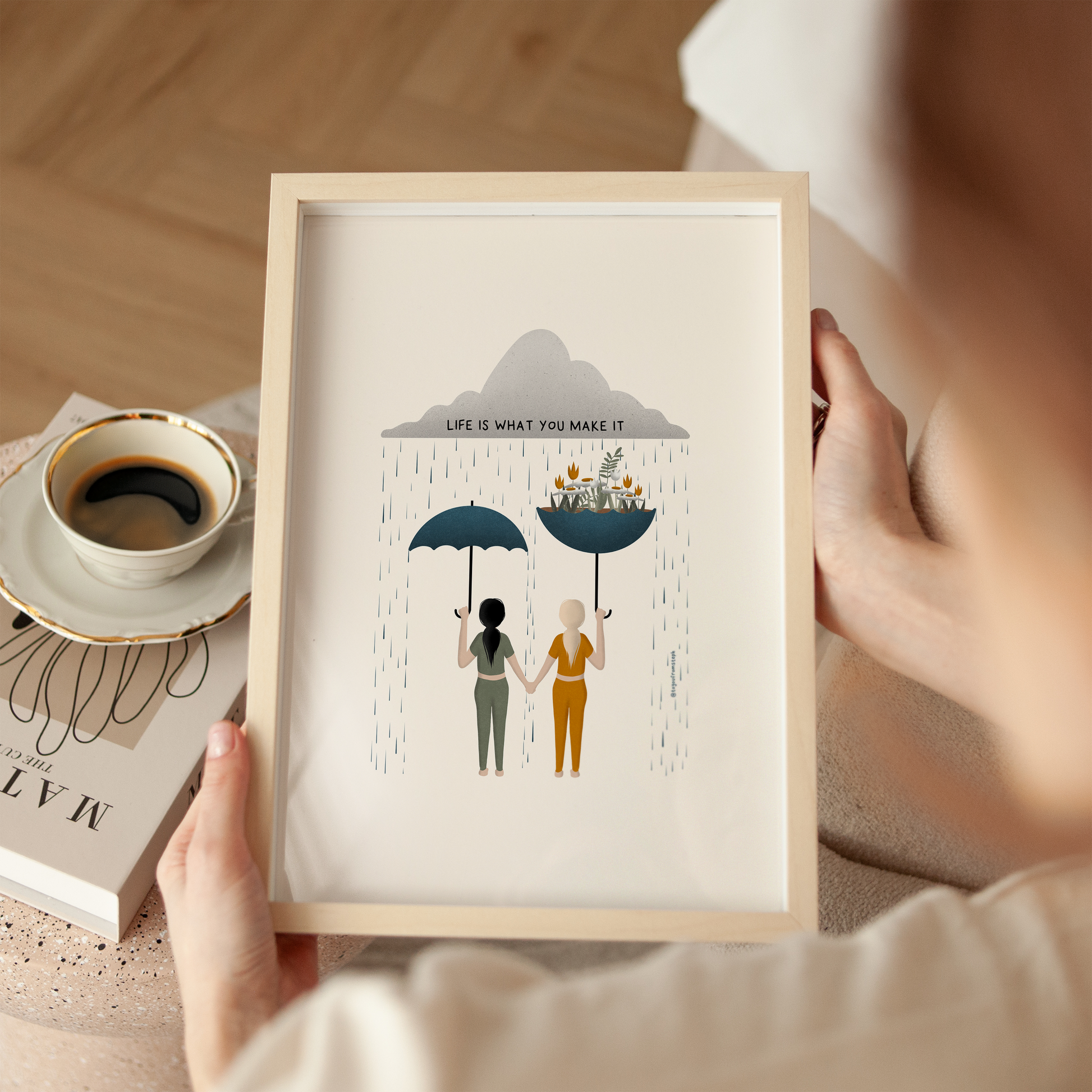 Elevate your home decor with this inspiring and motivational art print. This illustration features a powerful quote that is perfect for any woman's space. Printed on high-quality paper, this art print adds a touch of inspiration to any room. Transform your home into a haven of self-care with this beautiful print.