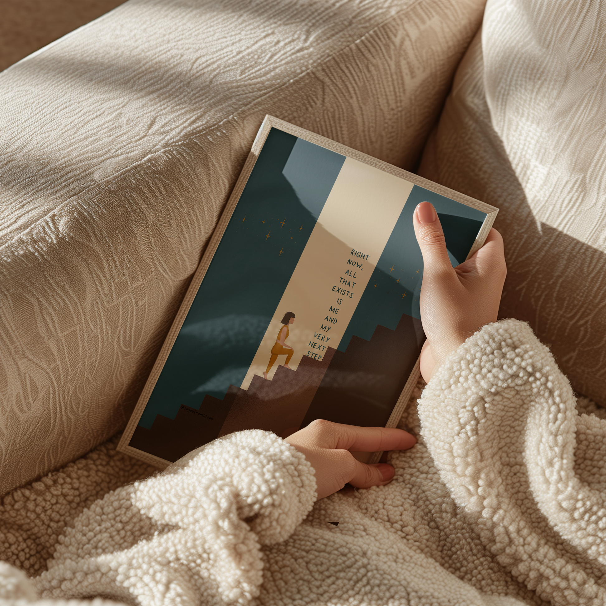 Elevate your home decor with this inspiring and motivational art print. This illustration features a powerful quote that is perfect for any woman's space. Printed on high-quality paper, this art print adds a touch of inspiration to any room. Transform your home into a haven of self-care with this beautiful print.