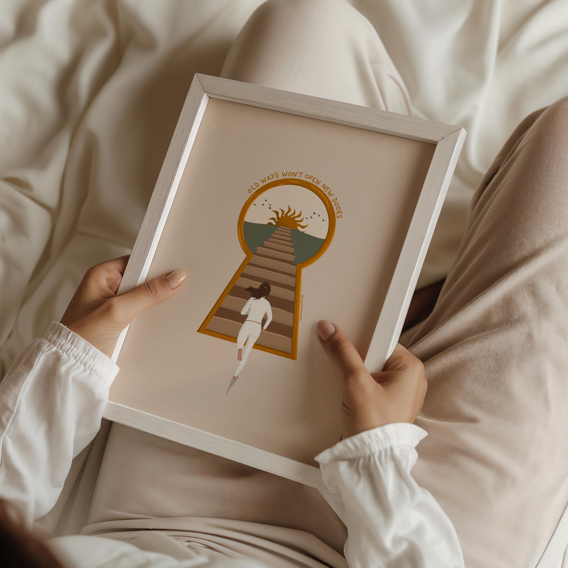 Elevate your home decor with this inspiring and motivational art print. This illustration features a powerful quote that is perfect for any woman's space. Printed on high-quality paper, this art print adds a touch of inspiration to any room. Transform your home into a haven of self-care with this beautiful print.