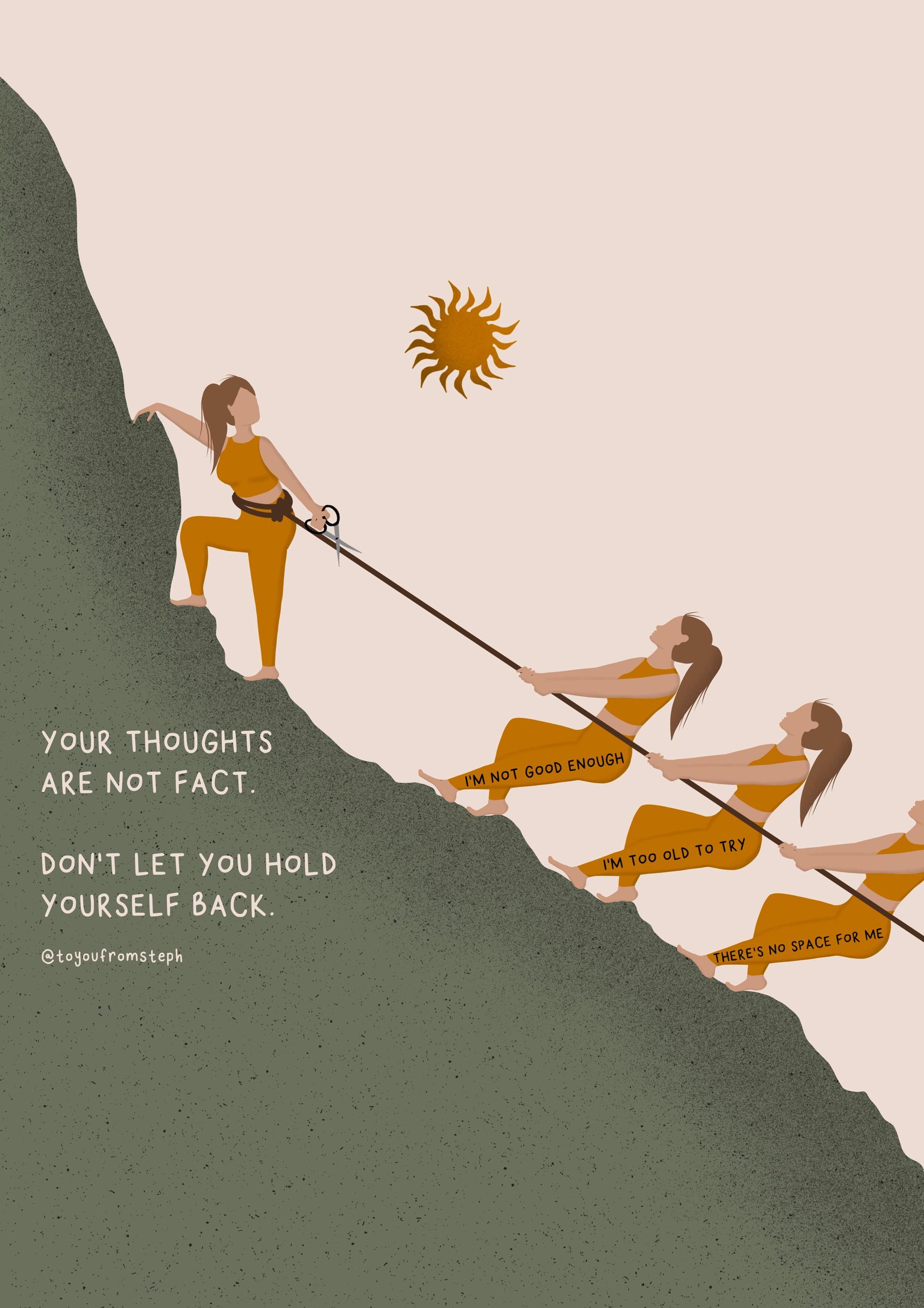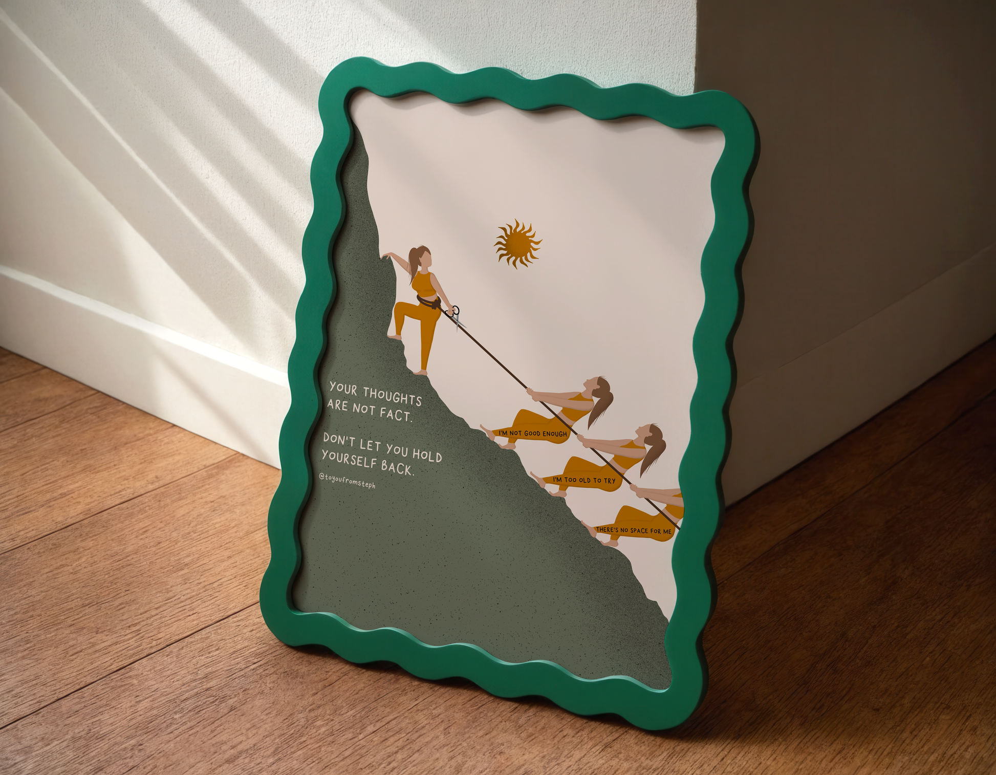 Elevate your home decor with this inspiring and motivational art print. This illustration features a powerful quote that is perfect for any woman's space. Printed on high-quality paper, this art print adds a touch of inspiration to any room. Transform your home into a haven of self-care with this beautiful print.