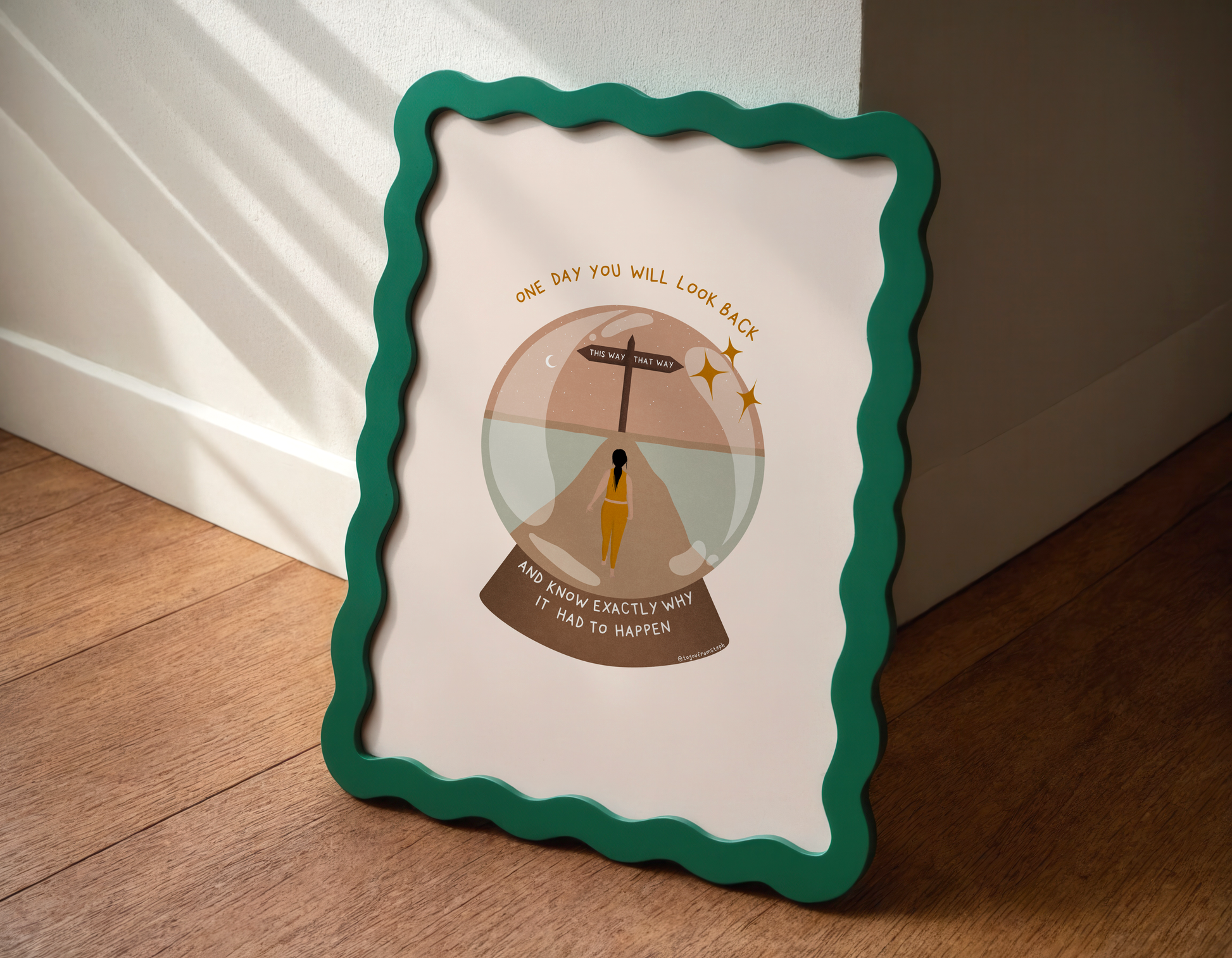 Elevate your home decor with this inspiring and motivational art print. This illustration features a powerful quote that is perfect for any woman's space. Printed on high-quality paper, this art print adds a touch of inspiration to any room. Transform your home into a haven of self-care with this beautiful print.