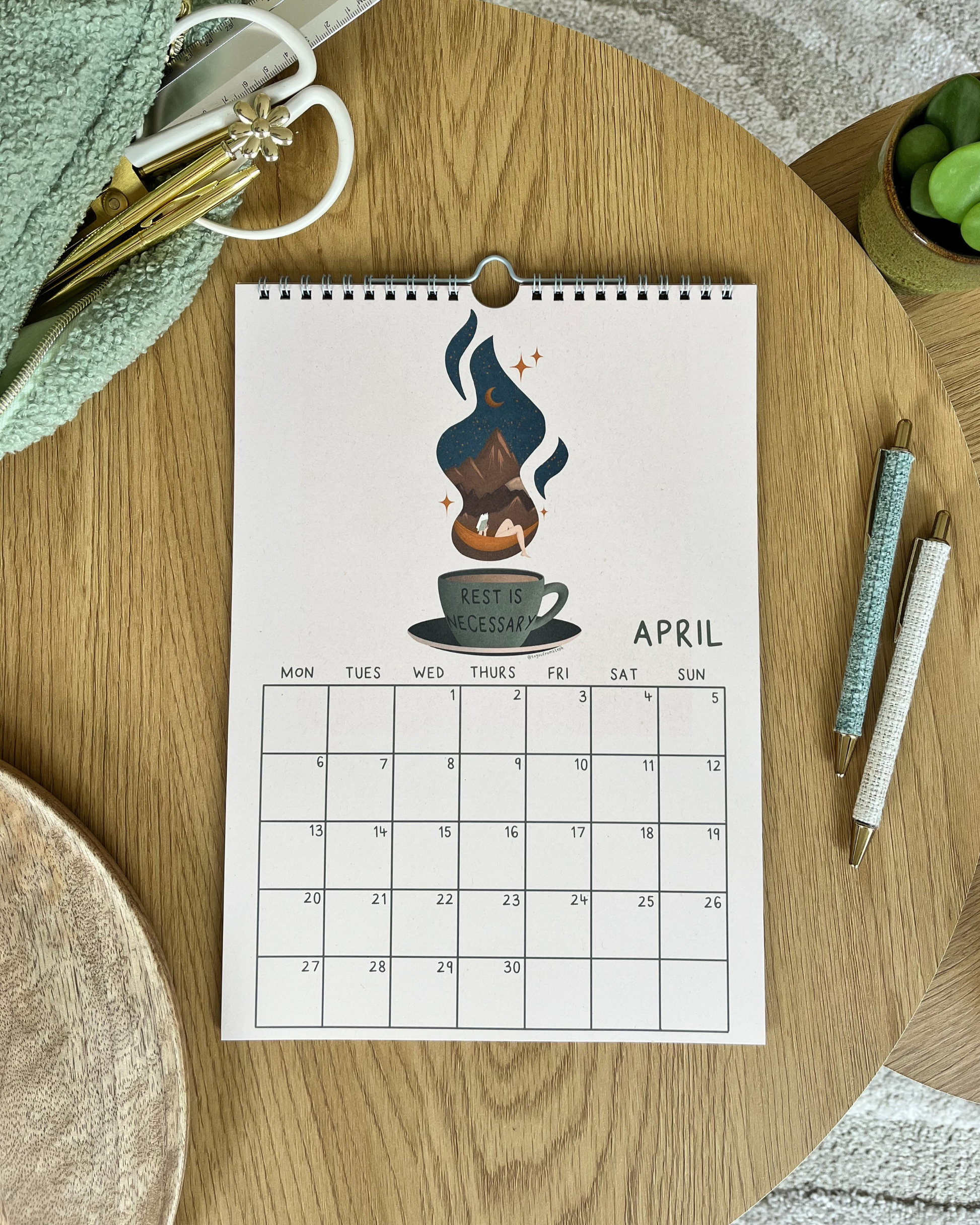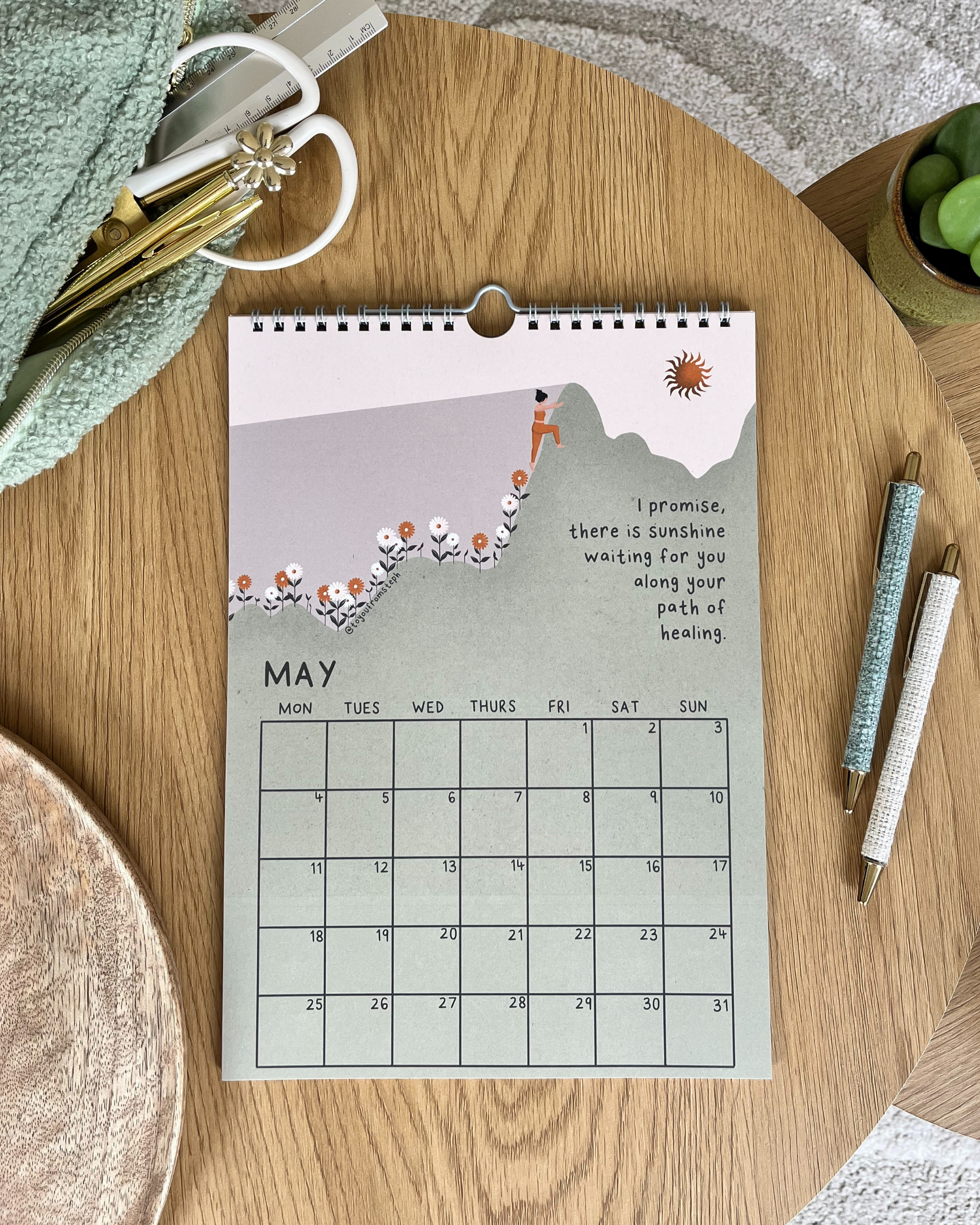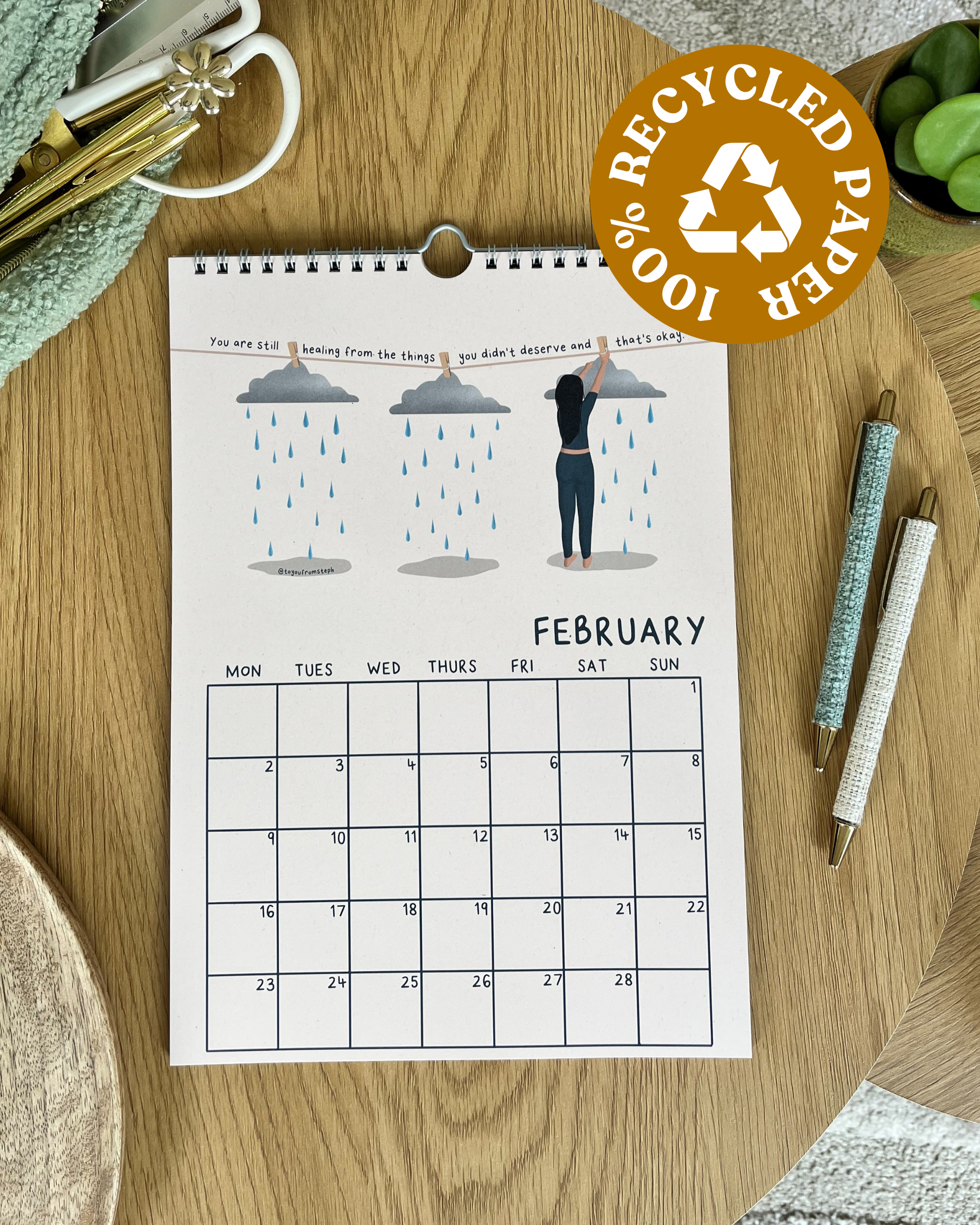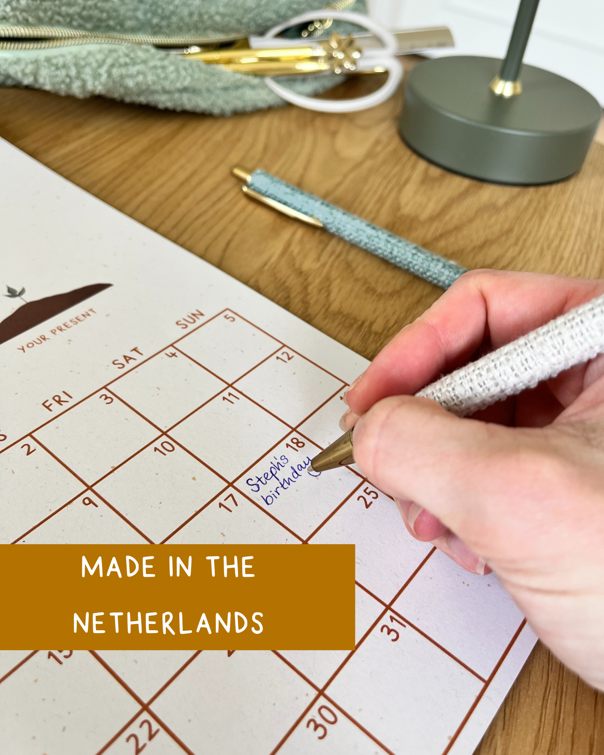 From January through December, every month is paired with uplifting, symbolic illustrations created to spark motivation, comfort, and joy in your everyday life. Printed on 100% recycled premium paper with vibrant colours, this calendar doubles as both a practical planner and a collection of art you’ll want to keep even after the year ends.