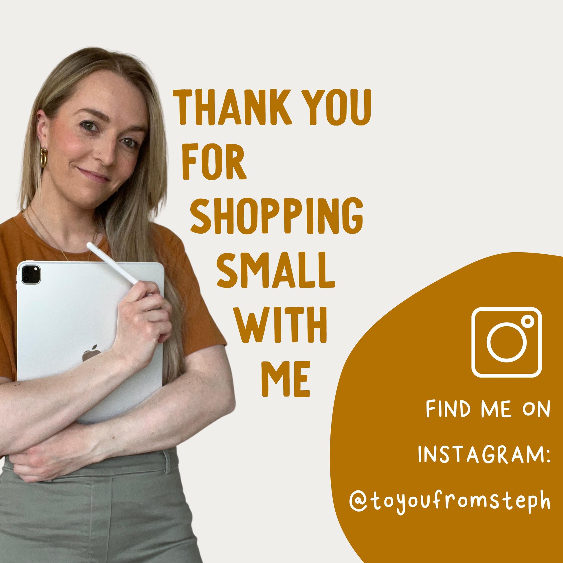 - To You From Steph is not responsible for any delays caused by busy holiday periods or custom delays.