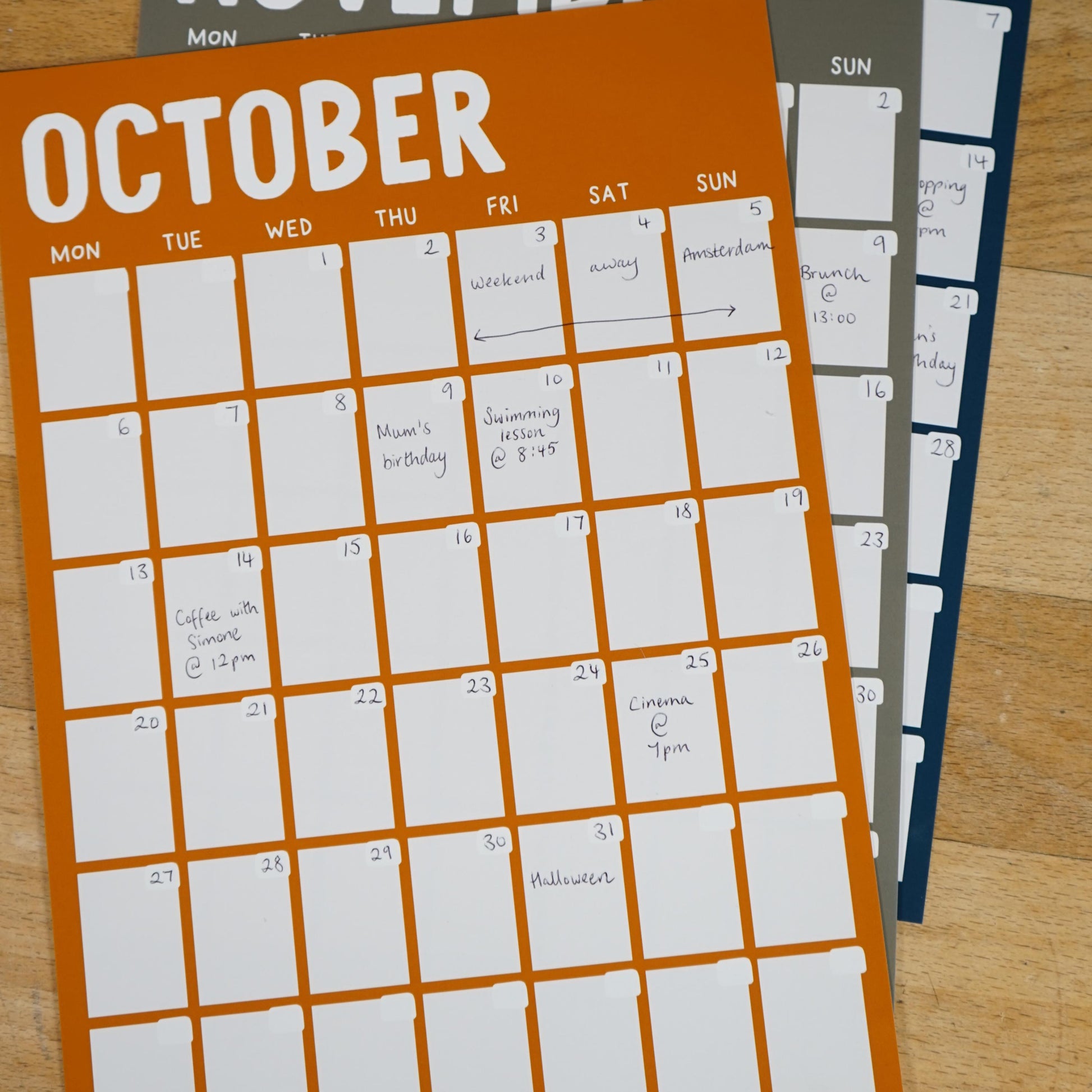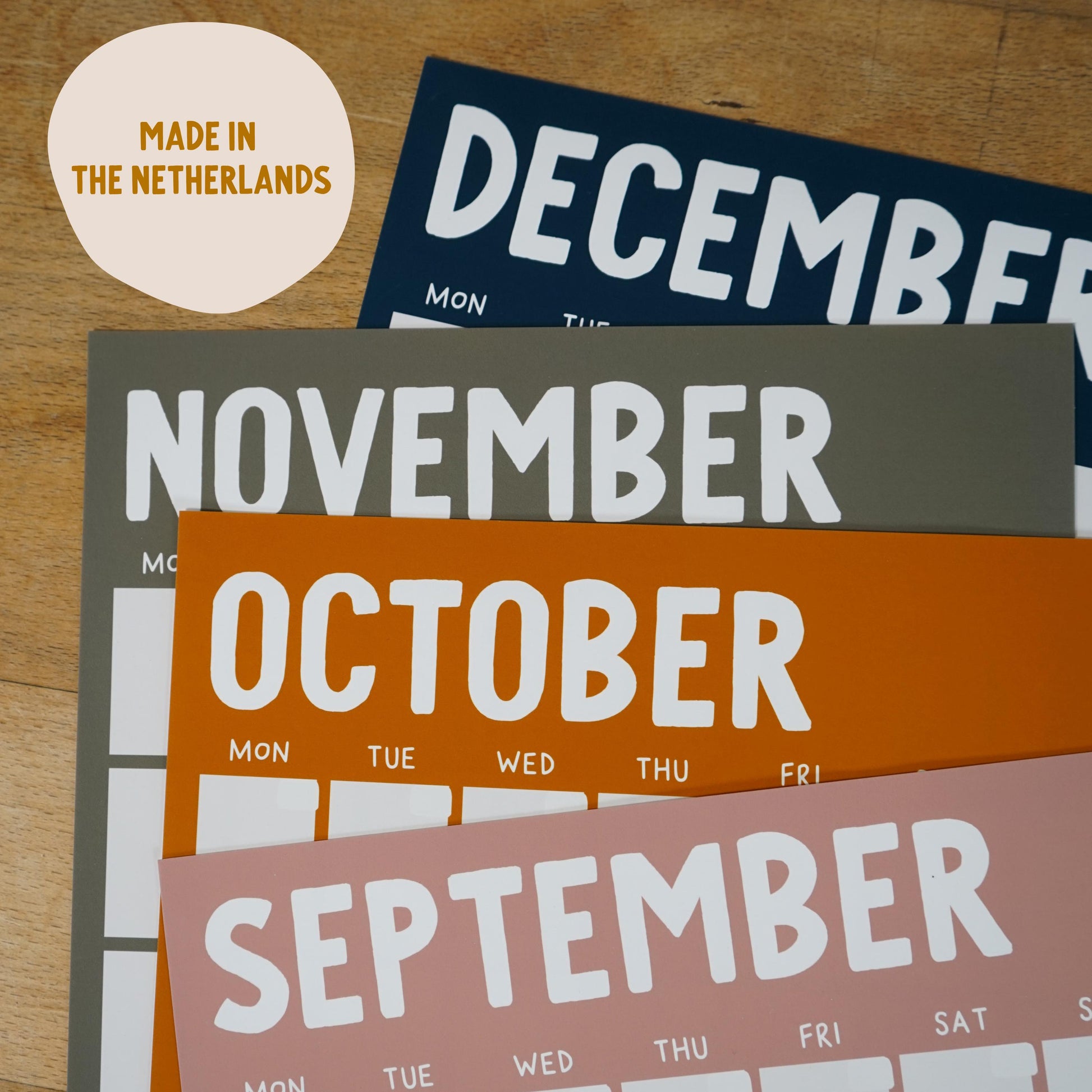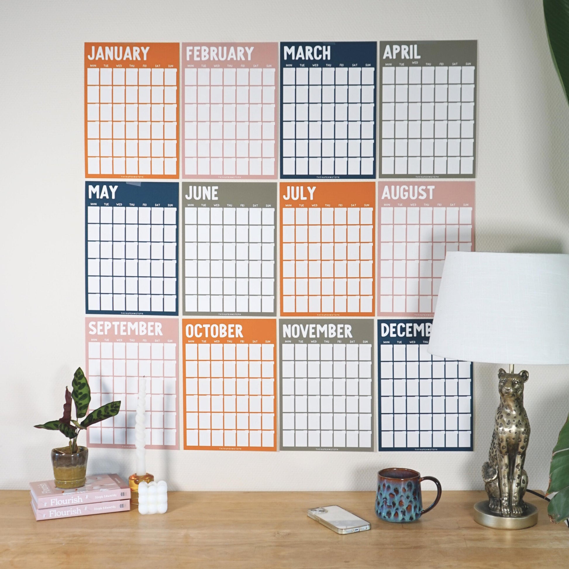 Large Undated Wall Planner - 12 A4 Individual Sheets in Bold Tones