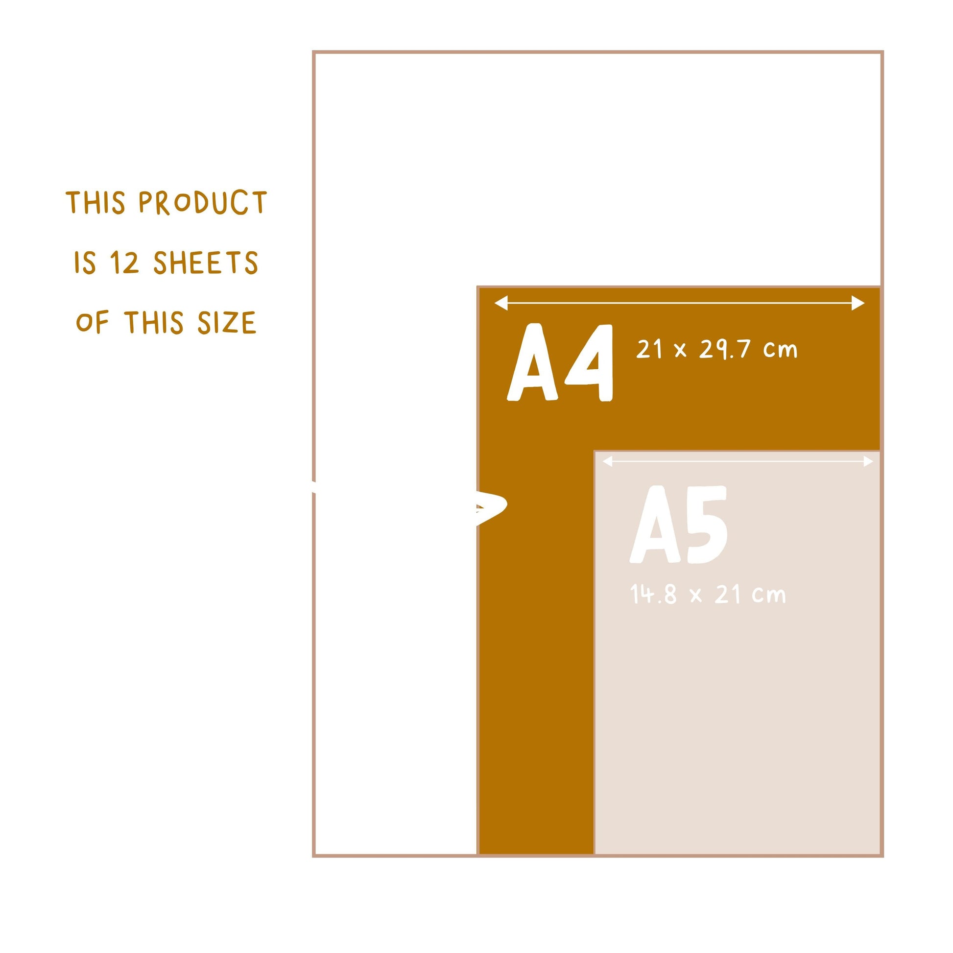 * 12 A4 Individual Sheets: Each month features a distinct, colourful design that inspires creativity and motivation. Easy to hang and switch out, these sheets allow for a fresh look every month.
