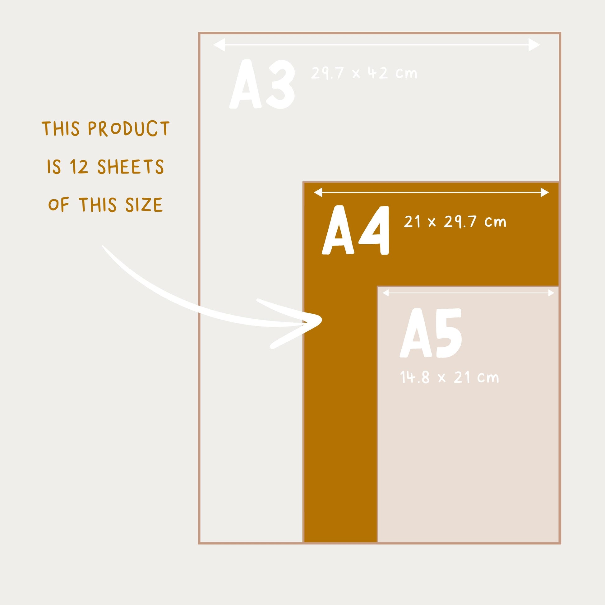 * 12 A4 Individual Sheets: Each month is beautifully represented on its own sheet, allowing you to easily switch out and showcase the month ahead while keeping your planning fresh and engaging.