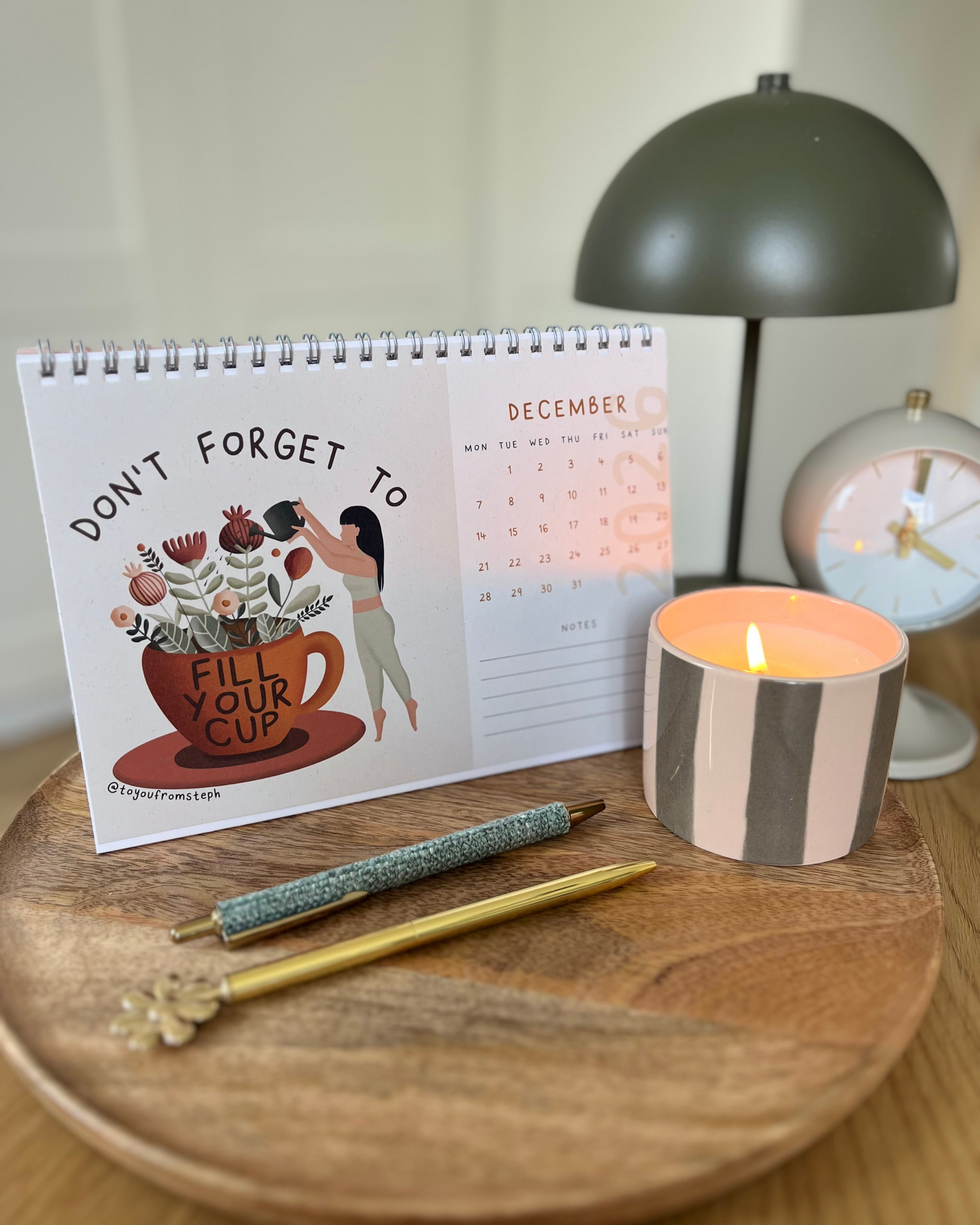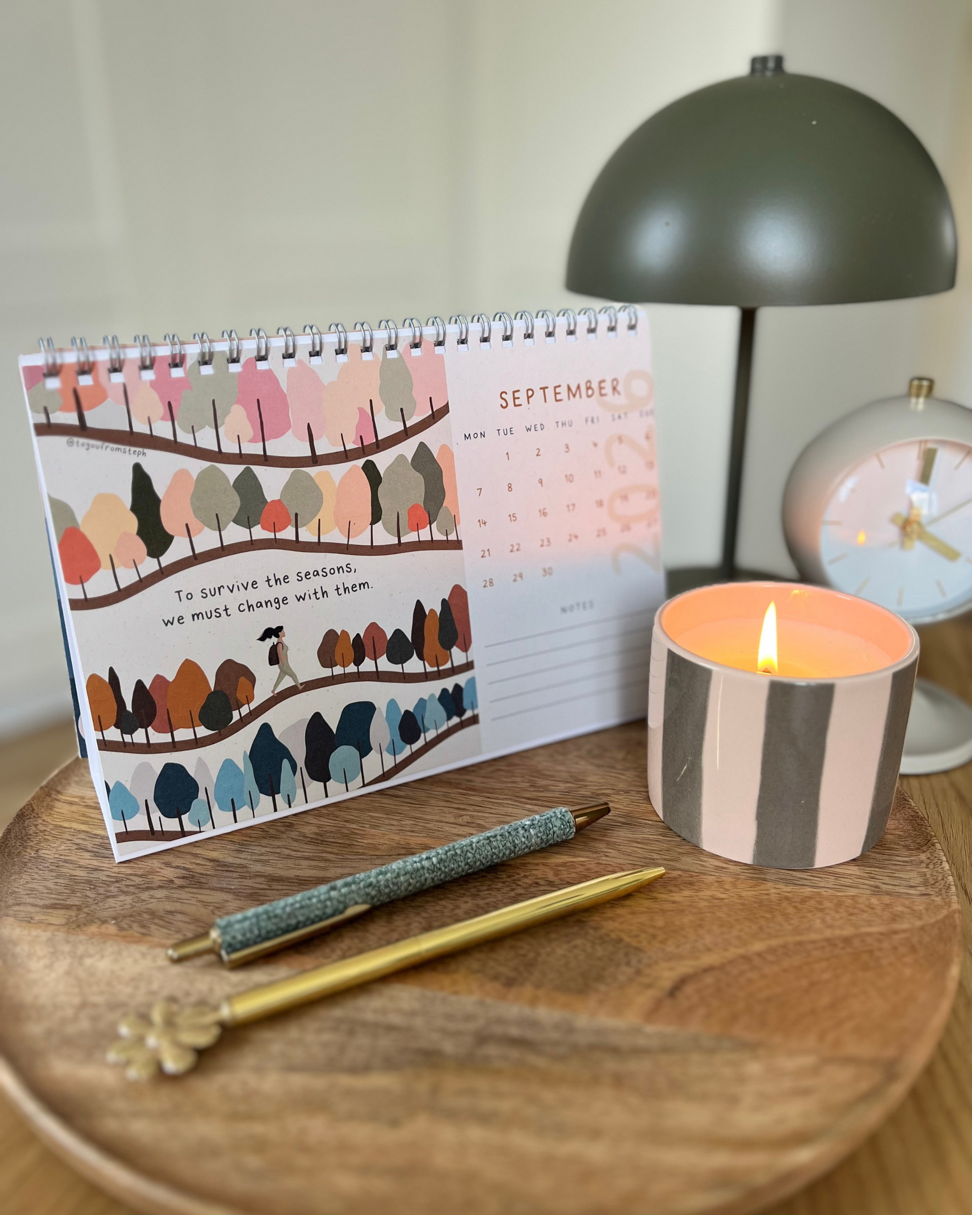 Each page features one of my illustrated artworks, combining practical monthly planning with meaningful designs to brighten your day. Thoughtfully printed on 100% recycled premium paper with vibrant colours, it’s a sustainable choice for organising your year with style.