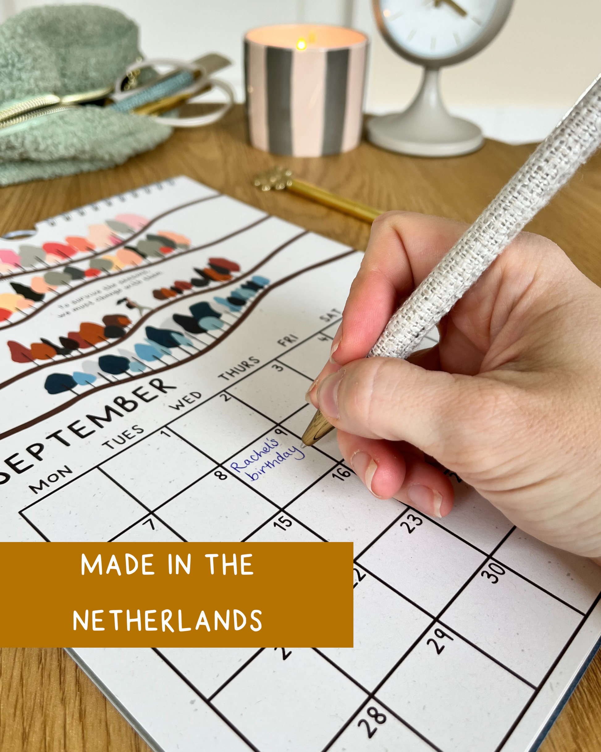From January through December, every month is paired with uplifting, symbolic illustrations created to spark motivation, comfort, and joy in your everyday life. Printed on 100% recycled premium paper with vibrant colours, this calendar doubles as both a practical planner and a collection of art you’ll want to keep even after the year ends.