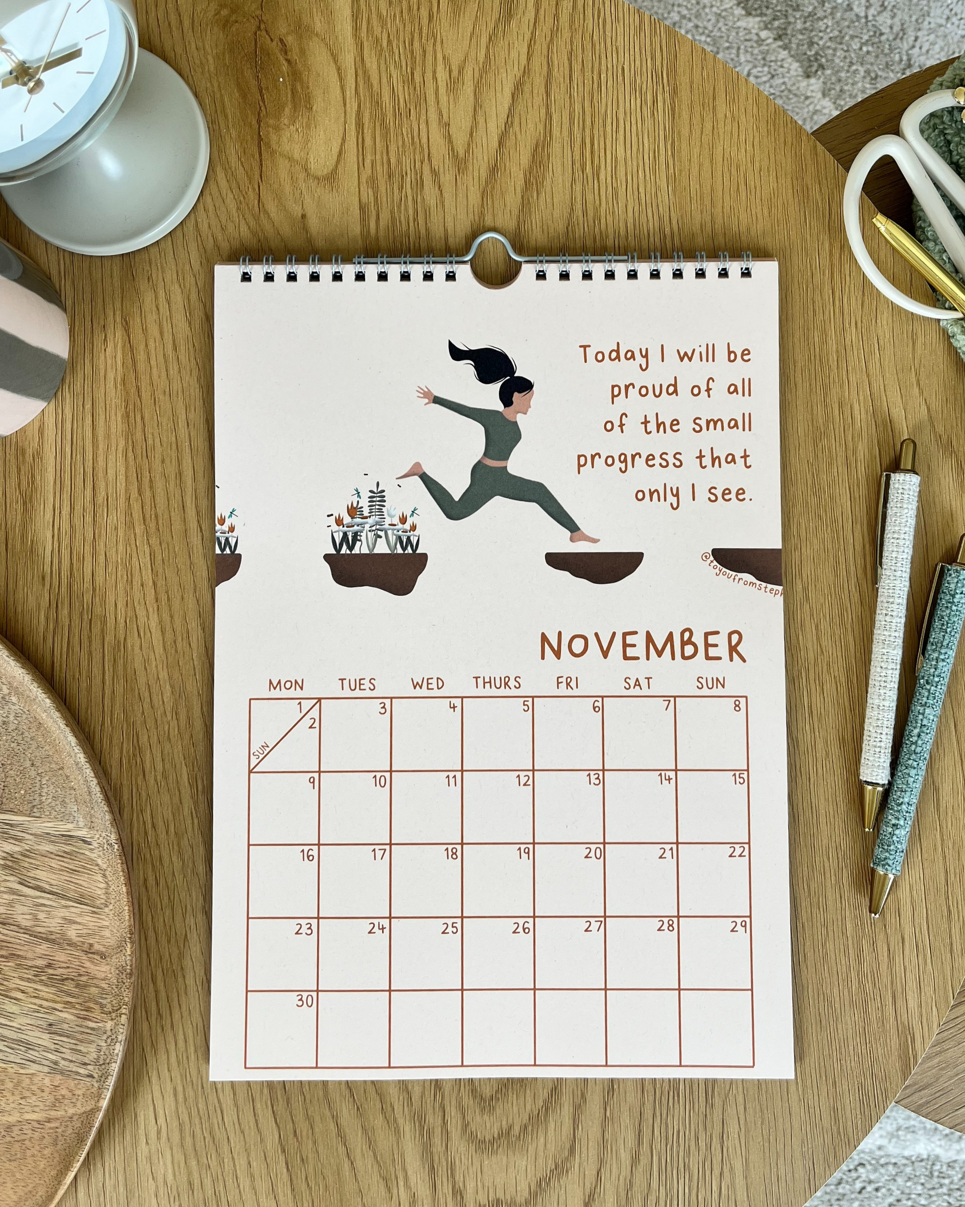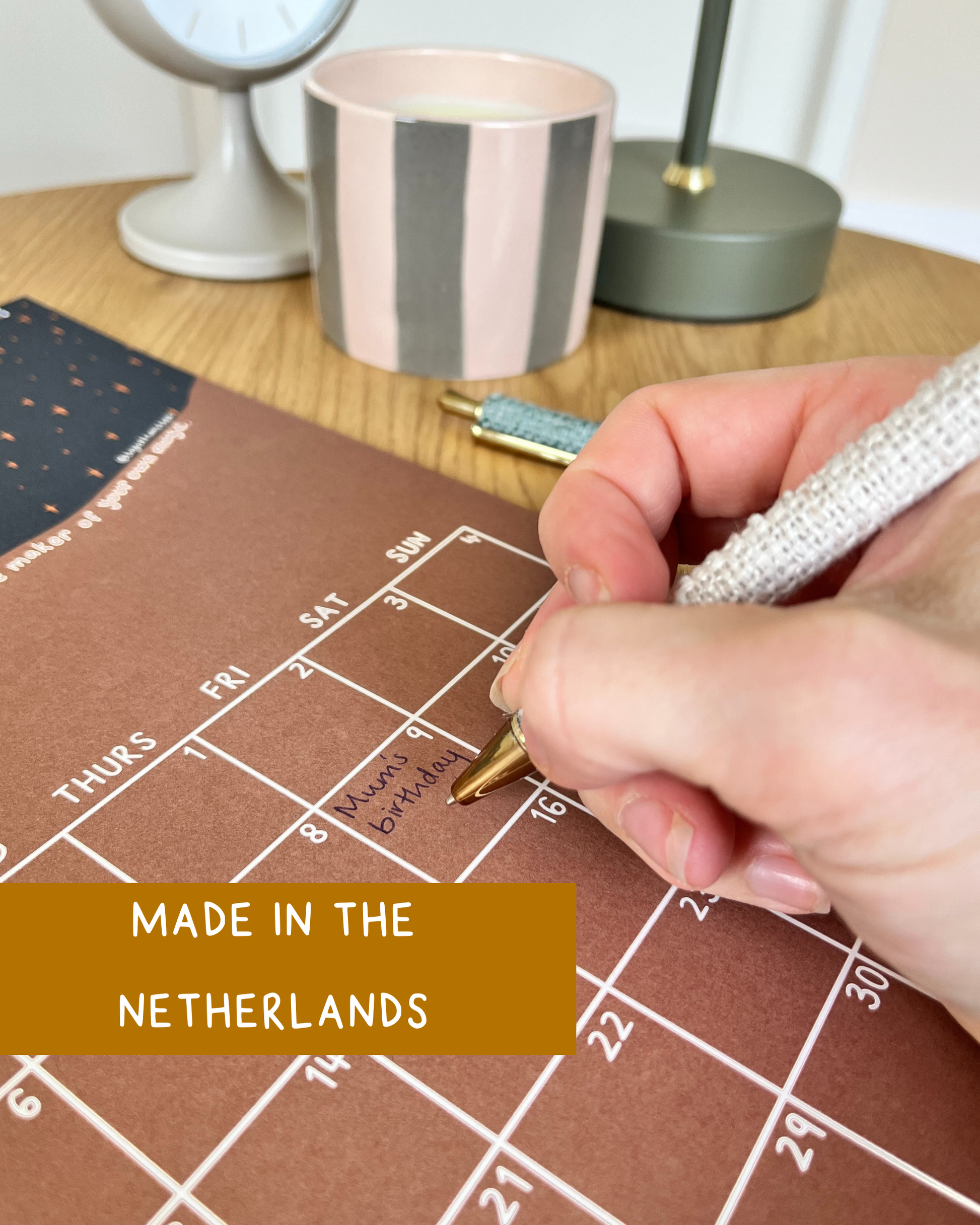 From January through December, every month is paired with uplifting, symbolic illustrations created to spark motivation, comfort, and joy in your everyday life. Printed on 100% recycled premium paper with vibrant colours, this calendar doubles as both a practical planner and a collection of art you’ll want to keep even after the year ends.