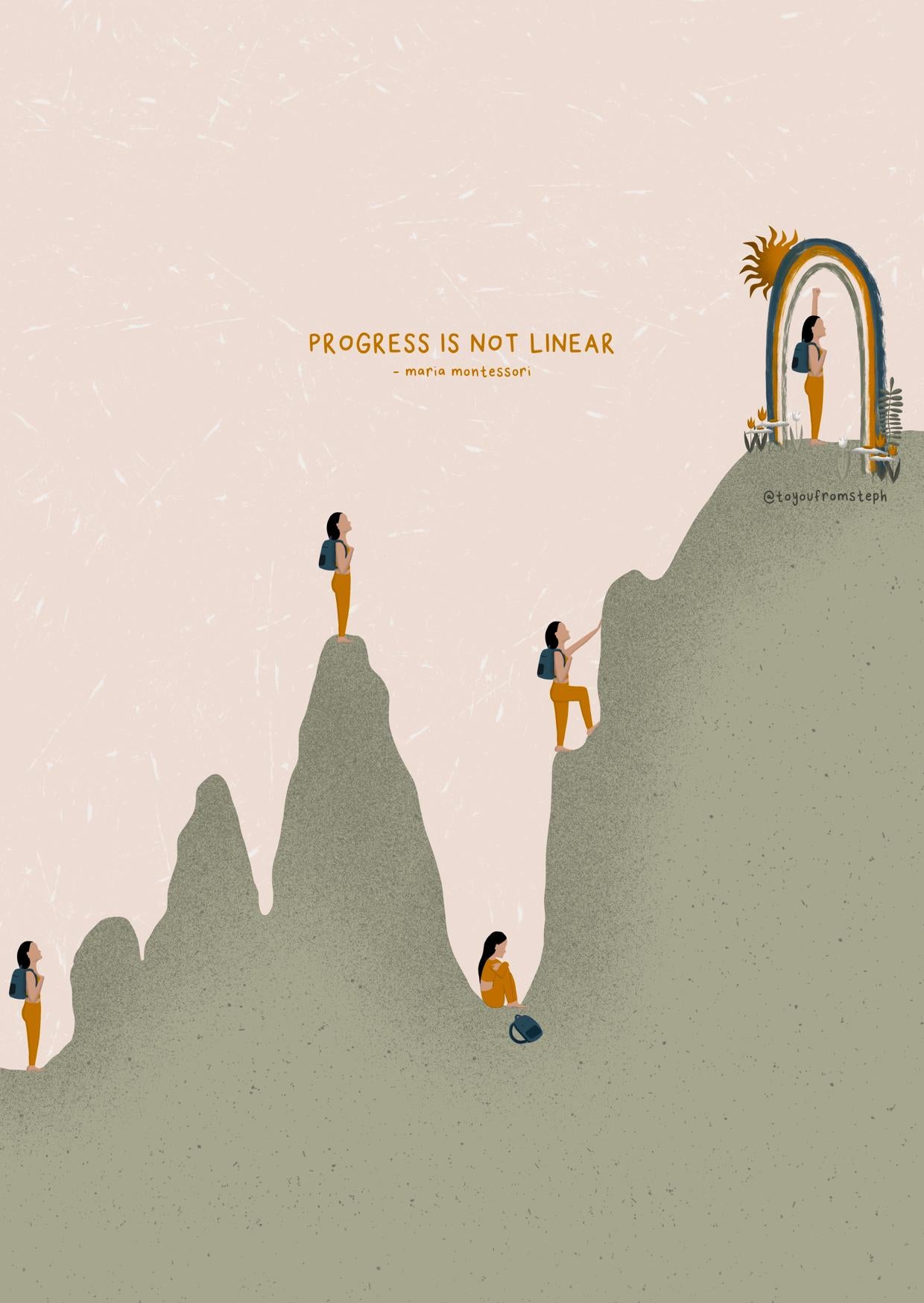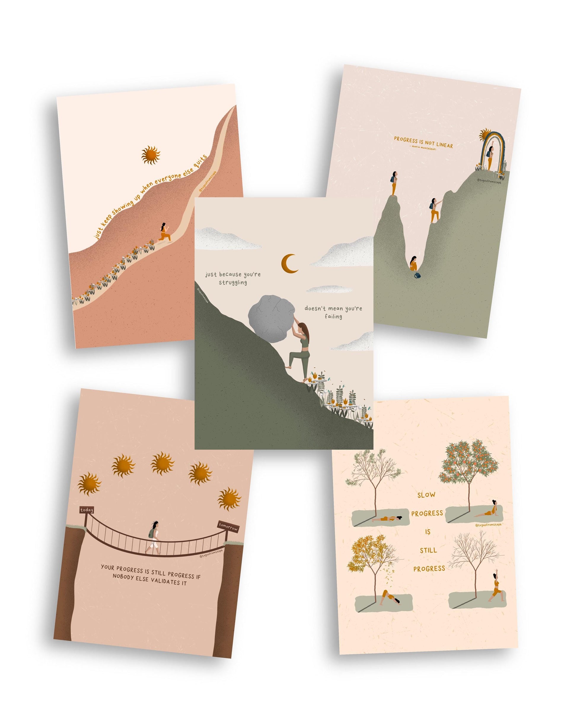 A bundle pack of 5 different postcards all based on the theme of progress.