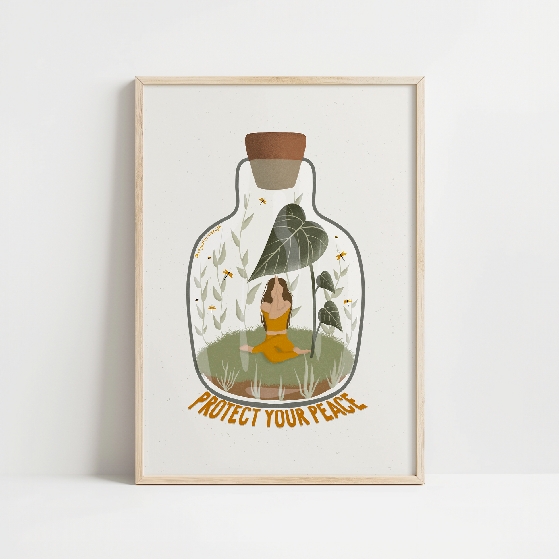Elevate your home decor with this inspiring and motivational art print. This illustration features a powerful quote that is perfect for any woman's space. Printed on high-quality paper, this art print adds a touch of inspiration to any room. Transform your home into a haven of self-care with this beautiful print.