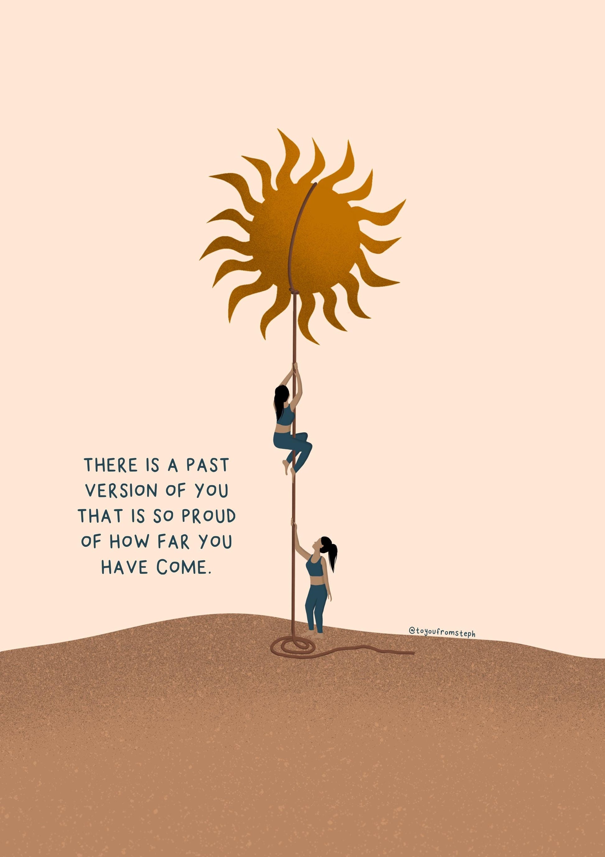Elevate your home decor with this inspiring and motivational art print. This illustration features a powerful quote that is perfect for any woman's space. Printed on high-quality paper, this art print adds a touch of inspiration to any room. Transform your home into a haven of self-care with this beautiful print.