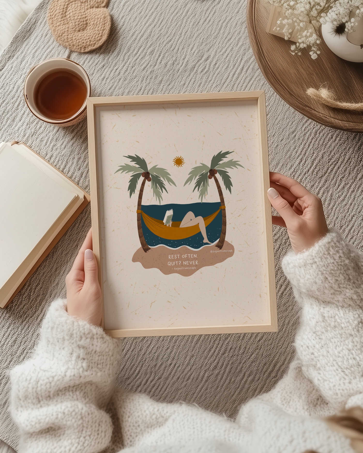 Elevate your home decor with this inspiring and motivational art print. This illustration features a powerful quote that is perfect for any woman's space. Printed on high-quality paper, this art print adds a touch of inspiration to any room. Transform your home into a haven of self-care with this beautiful print.