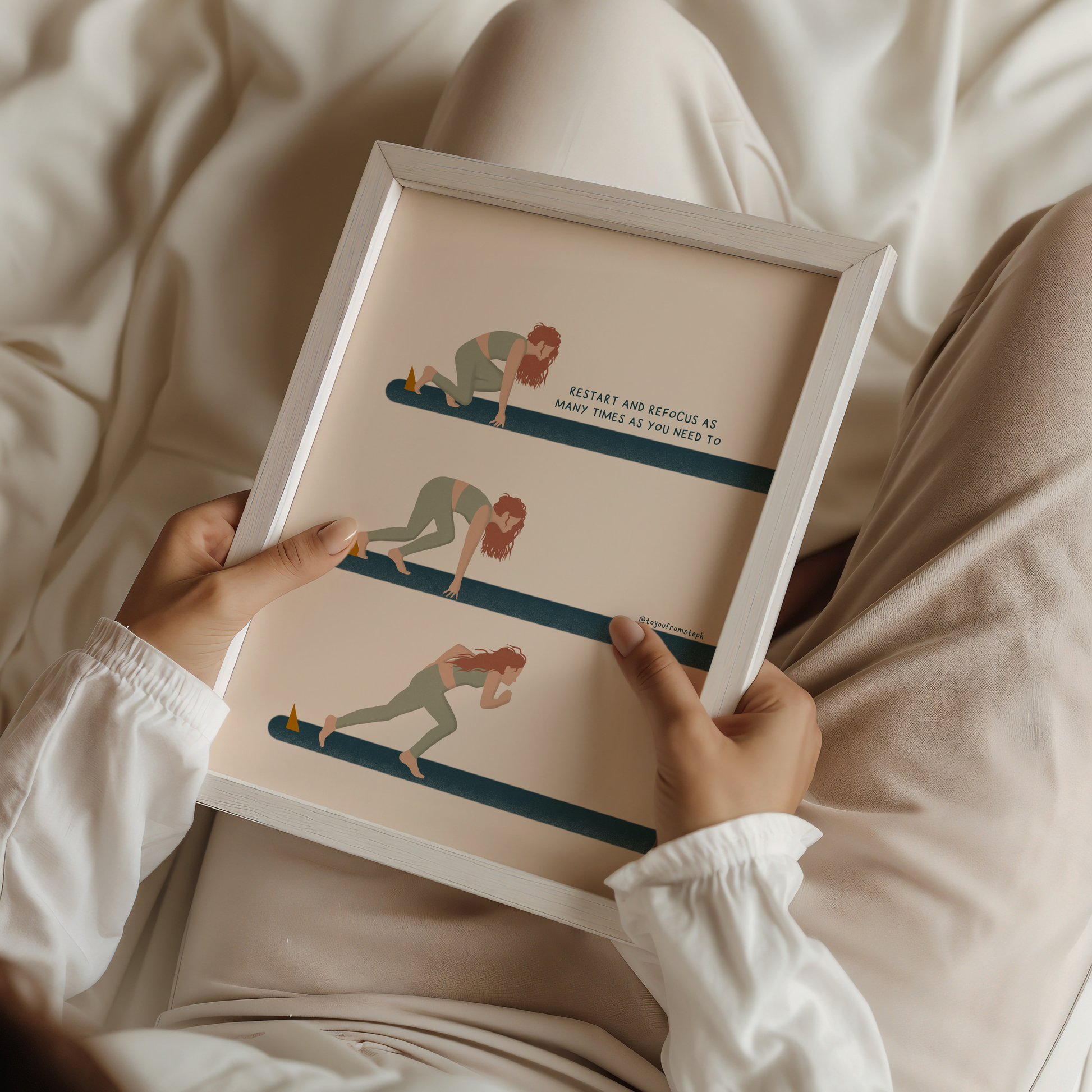 Elevate your home decor with this inspiring and motivational art print. This illustration features a powerful quote that is perfect for any woman's space. Printed on high-quality paper, this art print adds a touch of inspiration to any room. Transform your home into a haven of self-care with this beautiful print.