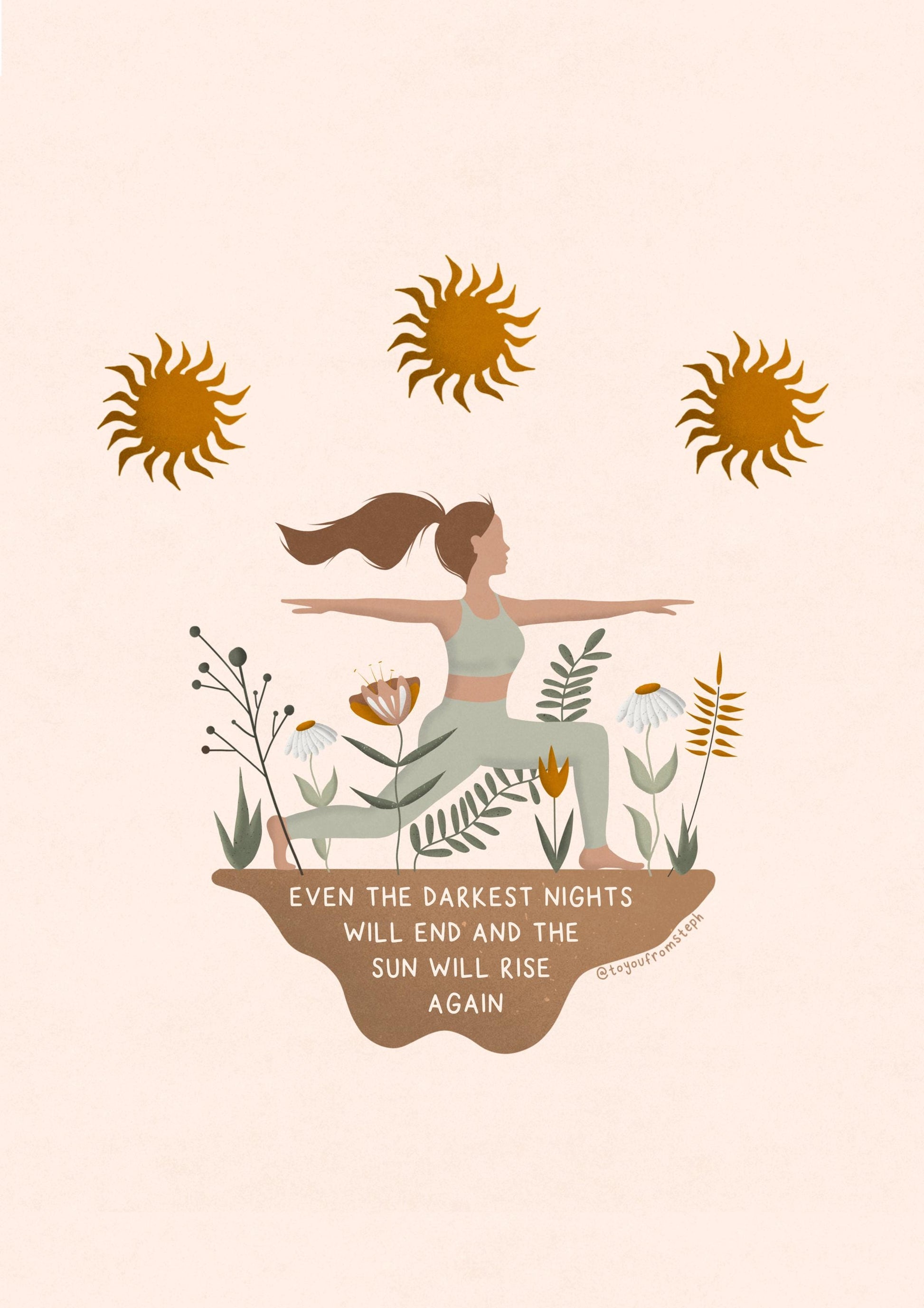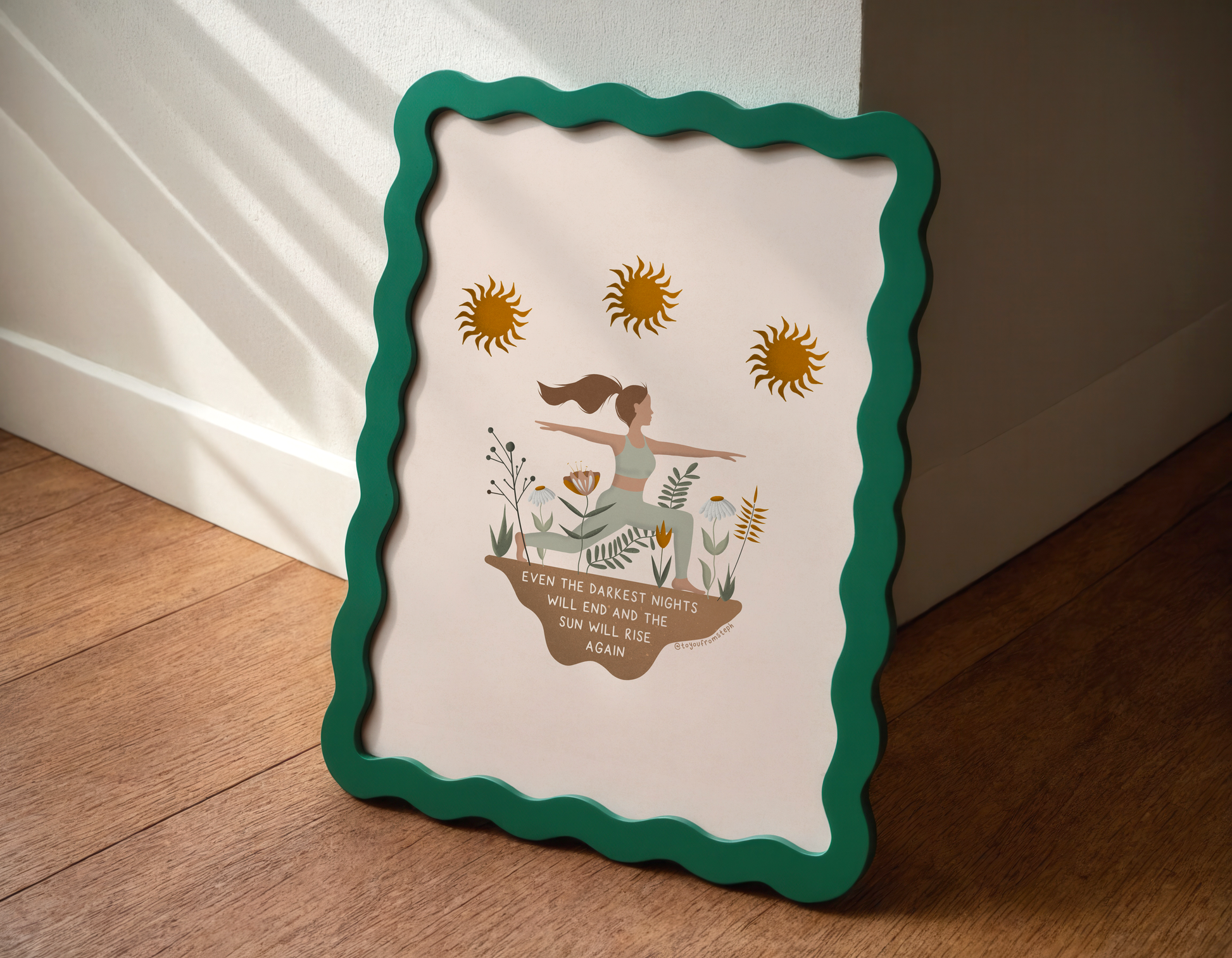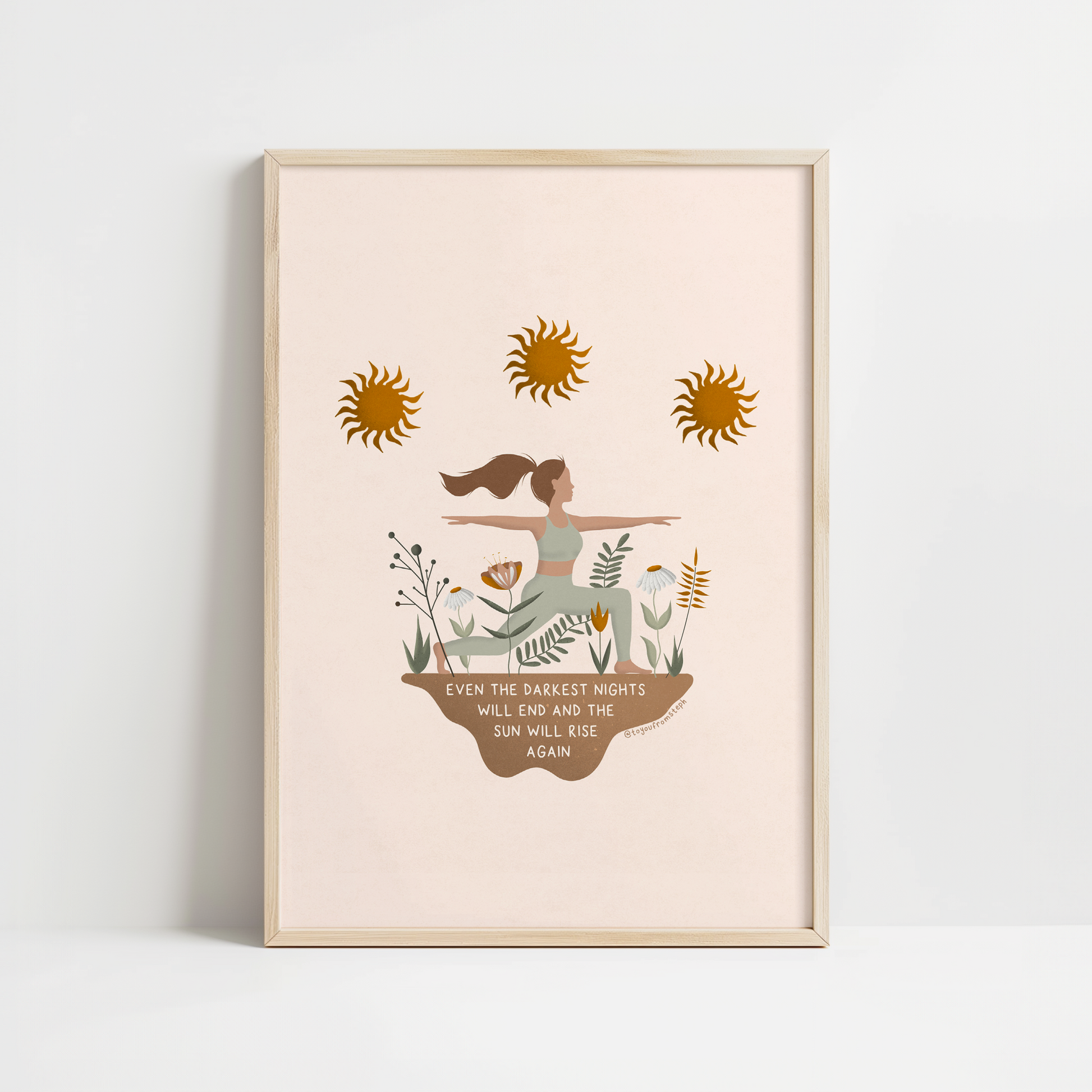 Elevate your home decor with this inspiring and motivational art print. This illustration features a powerful quote that is perfect for any woman's space. Printed on high-quality paper, this art print adds a touch of inspiration to any room. Transform your home into a haven of self-care with this beautiful print.