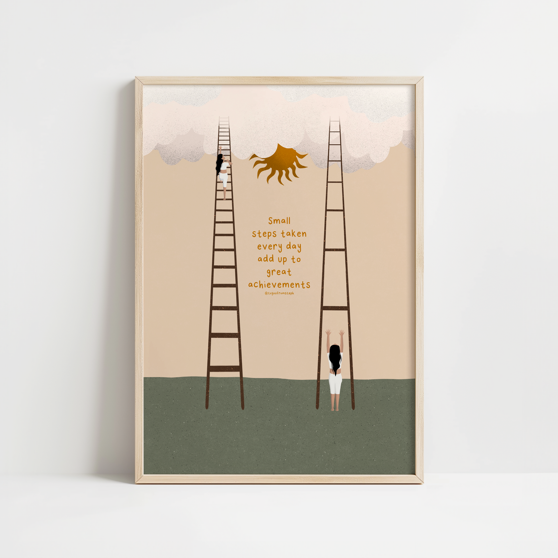 Elevate your home decor with this inspiring and motivational art print. This illustration features a powerful quote that is perfect for any woman's space. Printed on high-quality paper, this art print adds a touch of inspiration to any room. Transform your home into a haven of self-care with this beautiful print.