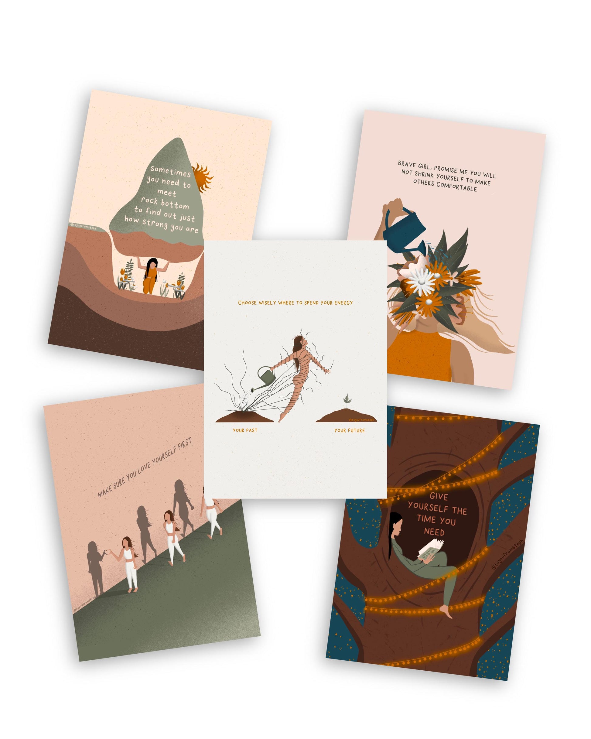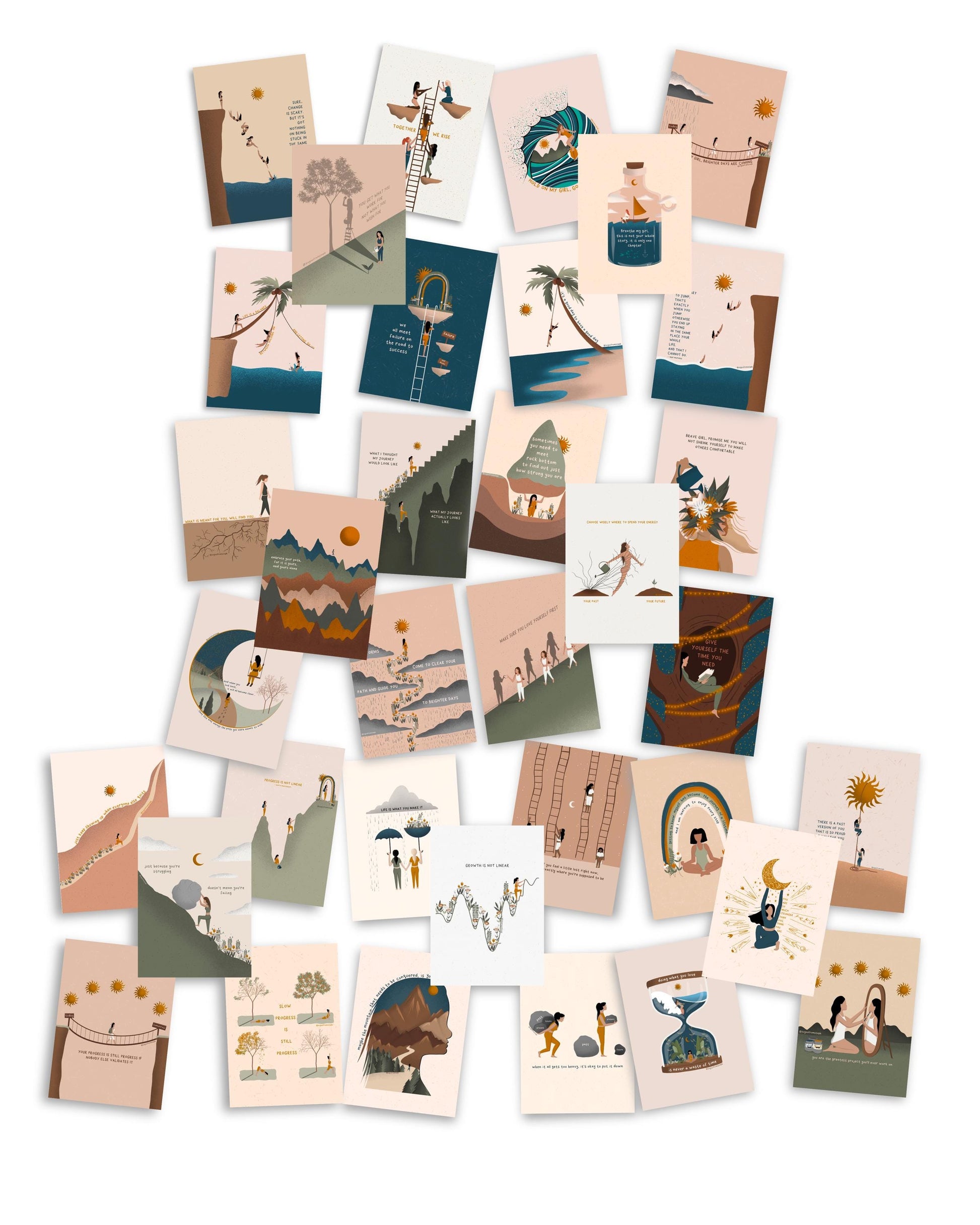 Transform your self-care routine with The ULTIMATE Postcard Bundle! Featuring 7 bundles in one, each postcard is a beautiful reminder of healing and growth. With stunning illustrations, it's perfect for framing or writing messages to loved ones. Place them on your desk or around the house for daily inspiration.