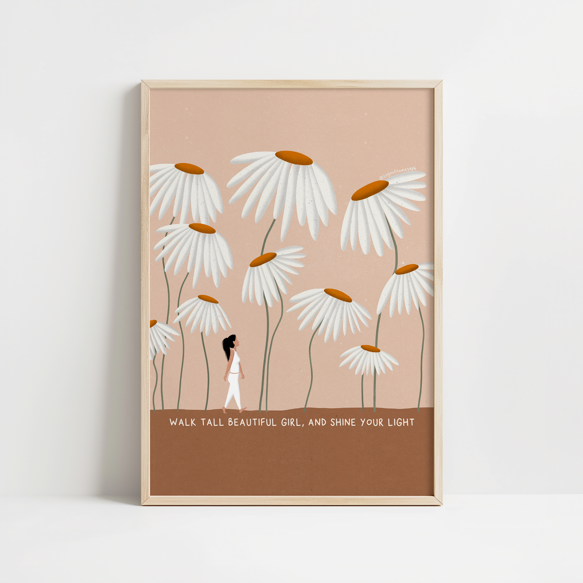 Elevate your home decor with this inspiring and motivational art print. This illustration features a powerful quote that is perfect for any woman's space. Printed on high-quality paper, this art print adds a touch of inspiration to any room. Transform your home into a haven of self-care with this beautiful print.