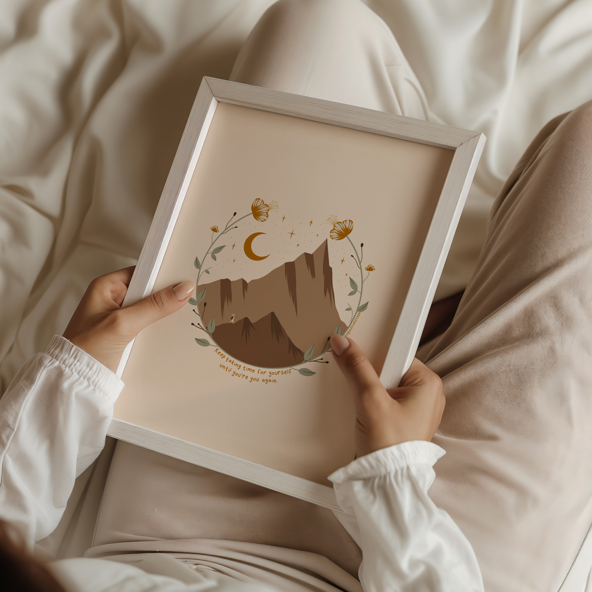 Elevate your home decor with this inspiring and motivational art print. This illustration features a powerful quote that is perfect for any woman's space. Printed on high-quality paper, this art print adds a touch of inspiration to any room. Transform your home into a haven of self-care with this beautiful print.