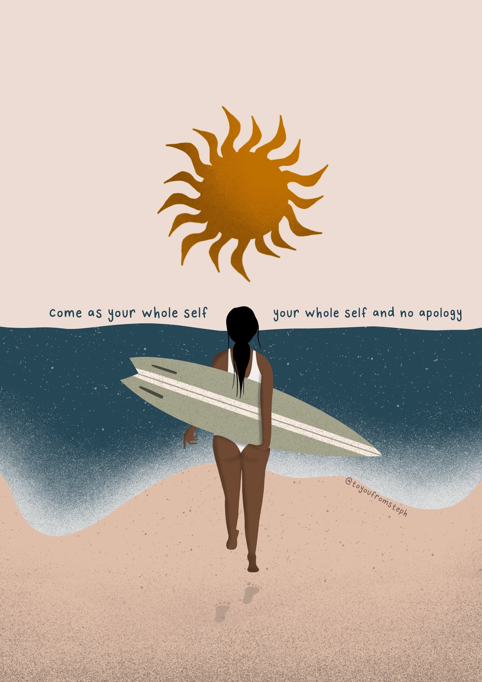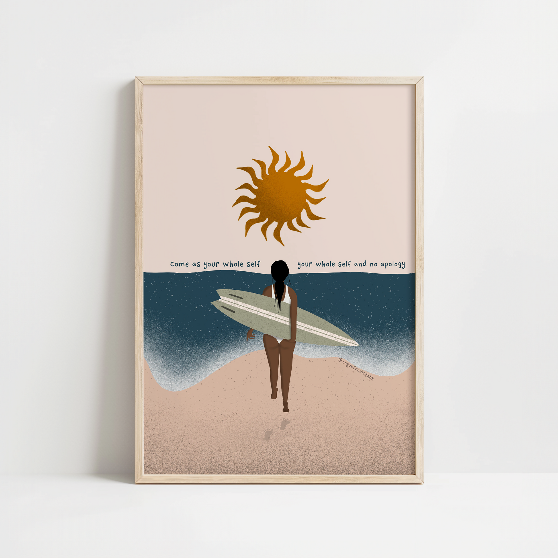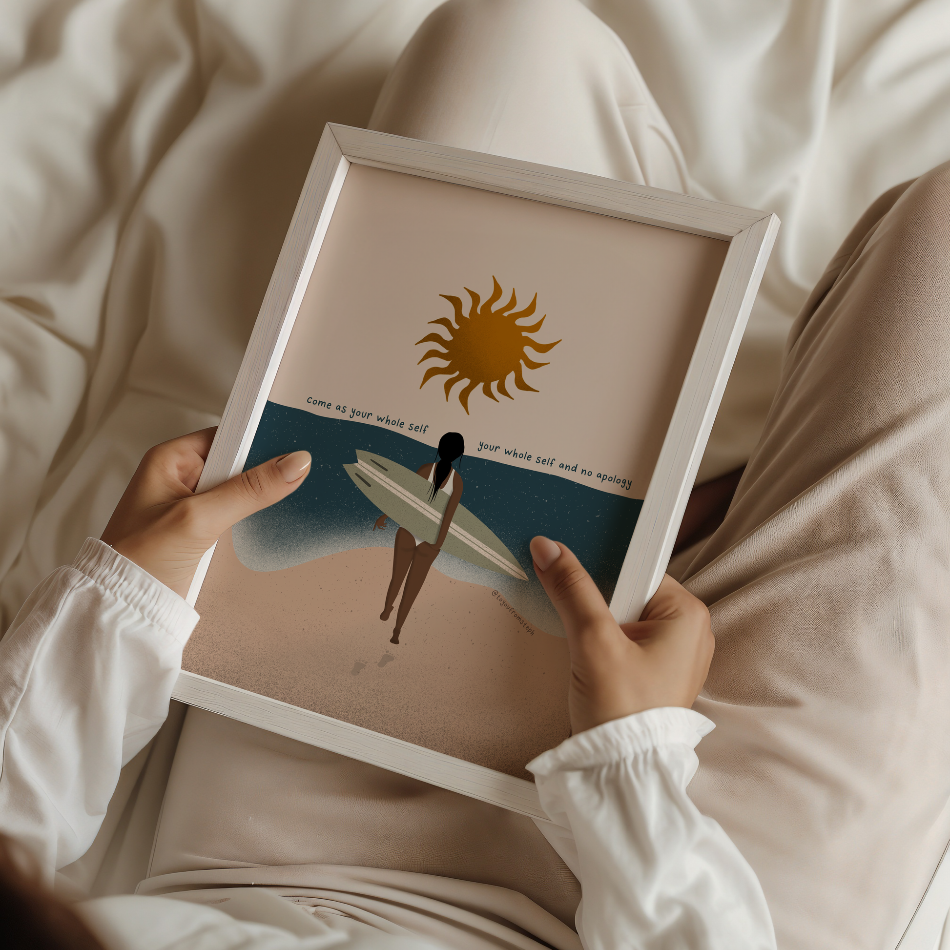 Elevate your home decor with this inspiring and motivational art print. This illustration features a powerful quote that is perfect for any woman's space. Printed on high-quality paper, this art print adds a touch of inspiration to any room. Transform your home into a haven of self-care with this beautiful print.