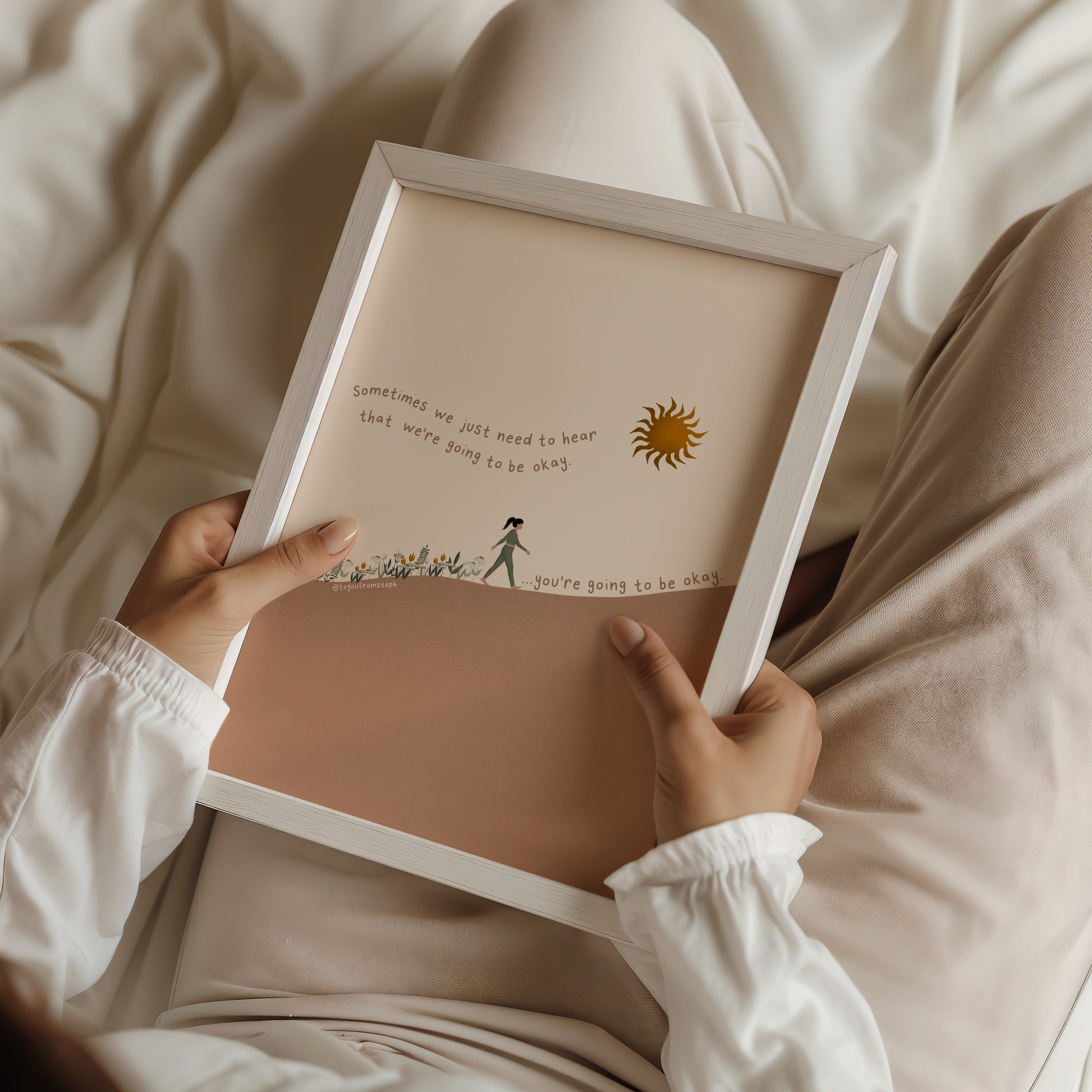 Elevate your home decor with this inspiring and motivational art print. This illustration features a powerful quote that is perfect for any woman's space. Printed on high-quality paper, this art print adds a touch of inspiration to any room. Transform your home into a haven of self-care with this beautiful print.